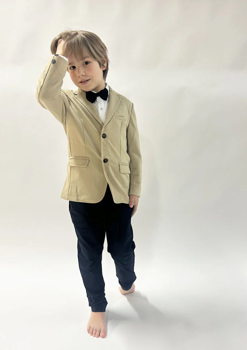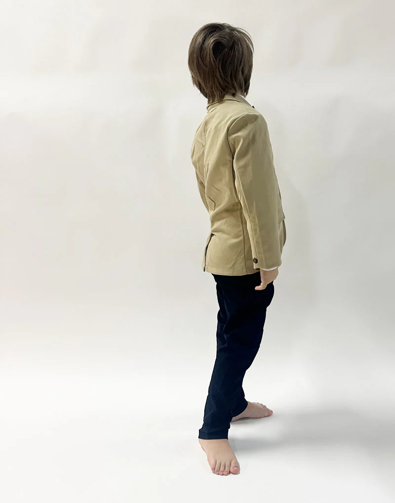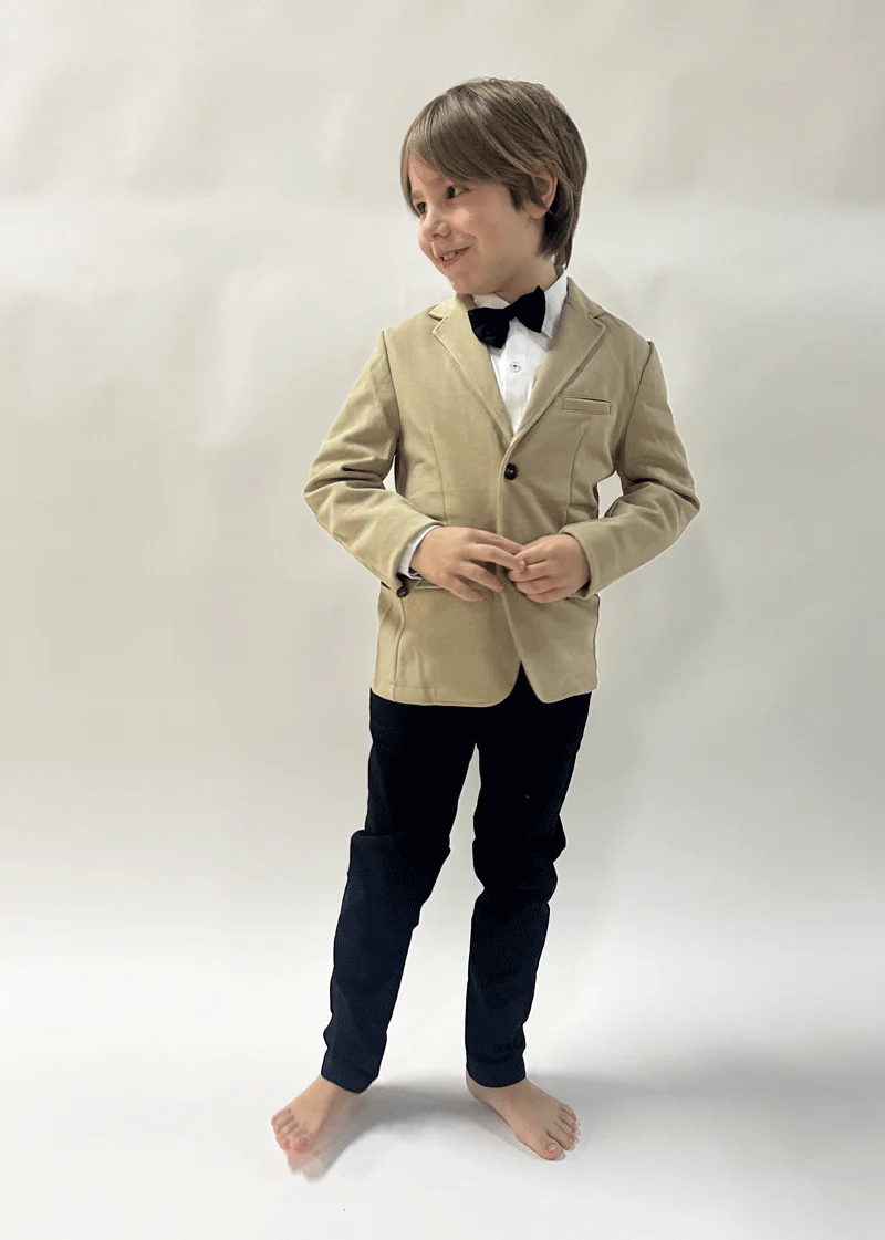 (stagione Primavera Estate) Abito con giacca. Comprende camicia, giacca, pantalone regolabile e papillon. Giacca monopetto con tasche. Camicia in cotone, colletto classico. Papillon removibile. Pantalone con zip e bottone. Composizione: Giacca: 95% poliestere 5% lycra Pantalone: 97% cotone 3% elastane Camicia: 100% cotone Tabella taglie 4 anni 104cm 6 anni 111cm 8 anni 128cm 10anni […]