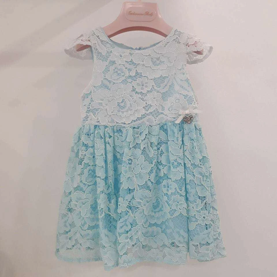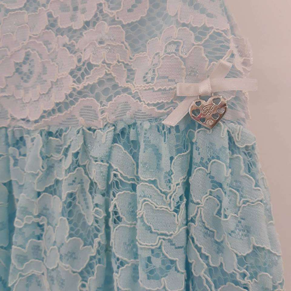 Abito bianco e celeste in pizzo