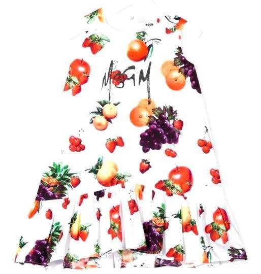Abito lungo in cotone con stampa frutta