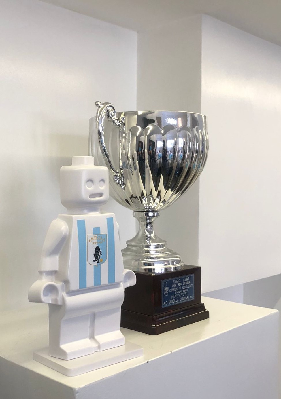 L’Alter Ego Oscar Virtus Entella è una scultura in resina realizzata dall’artista genovese Alessandro Piano (https://www.alepiano.com/).