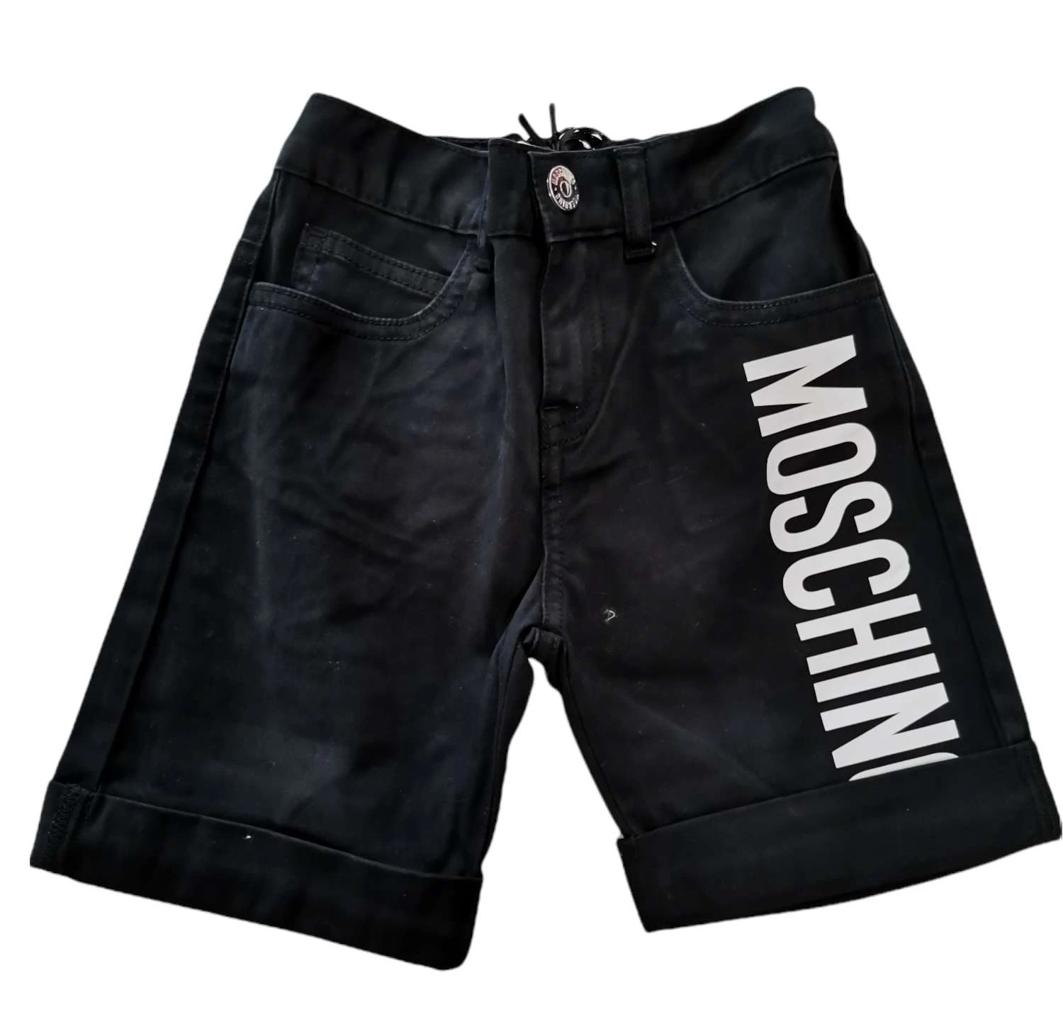Bermuda Moschino nero per bambini, chiusura con bottone, logo laterale
