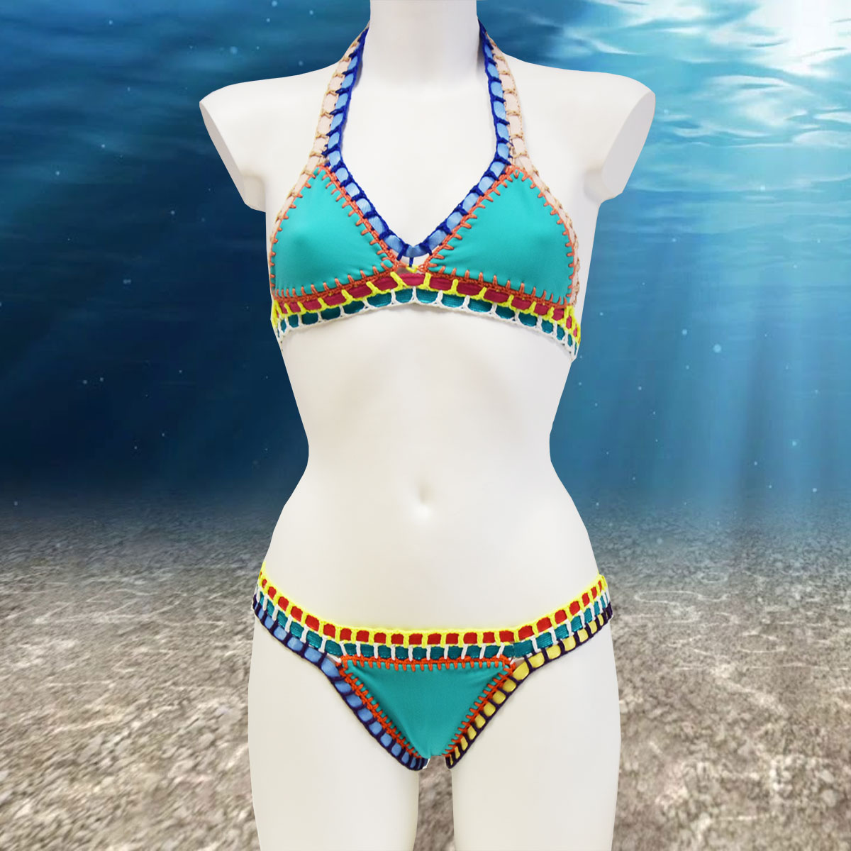 Bikini Tijuca – Malefica Il Bikini Tijuca è: Made in Brazil Handmade Foderato Le finiture sono all’uncinetto In questo modello il reggiseno del bikini è d’allacciare dietro alla schiena e al collo Prodotto in Lycra di eccellente qualità come tutti i nostri modelli Cotone Poliestere Nylon Elastan