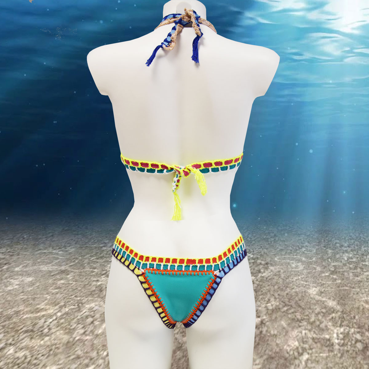 - In questo modello il reggiseno del bikini è d’allacciare dietro alla schiena e al collo