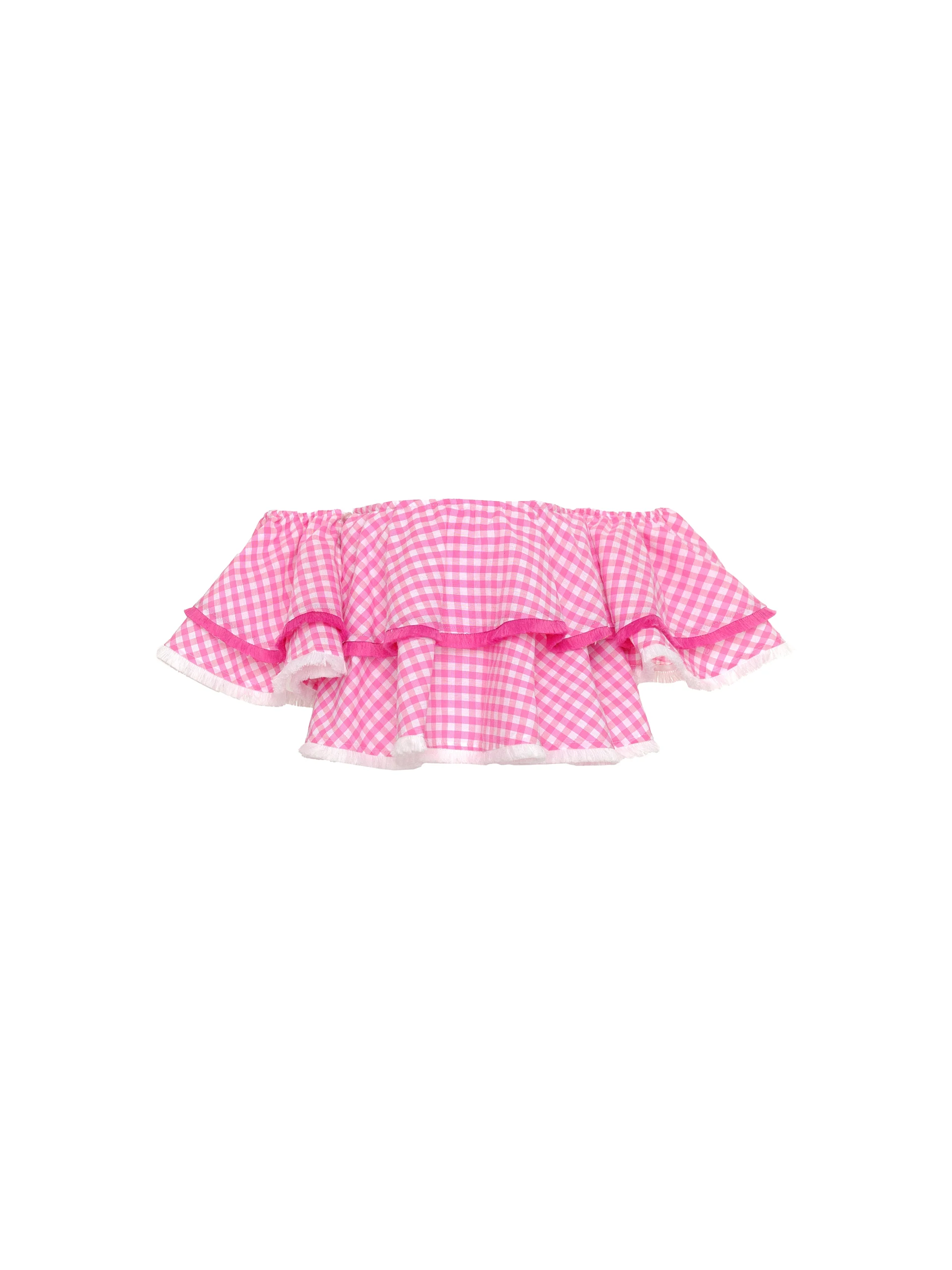blusa jijil bambina rosa in cotone quadri con bordi sfrangiati