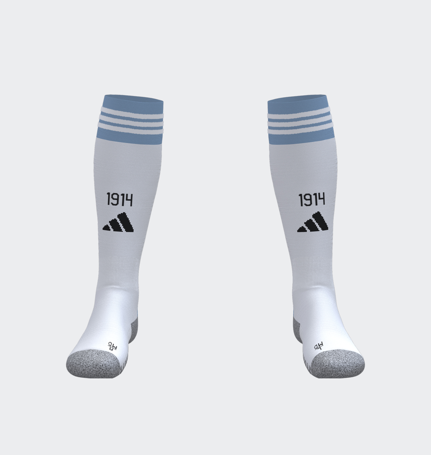 Adisock 25 Lunghezza al ginocchio Tecnologia Aeroready per maggiore traspirabilità Ammortizzazione su tallone e punta Ammortizzazione in spugna sulla parte superiore del tallone Calzata specifica per il piede destro e sinistro Materiale: 83% poliestere riciclato / 12% cotone / 5% elastane Colore: bianco/nero/celeste/grigio Anno di fondazione del Club cucito