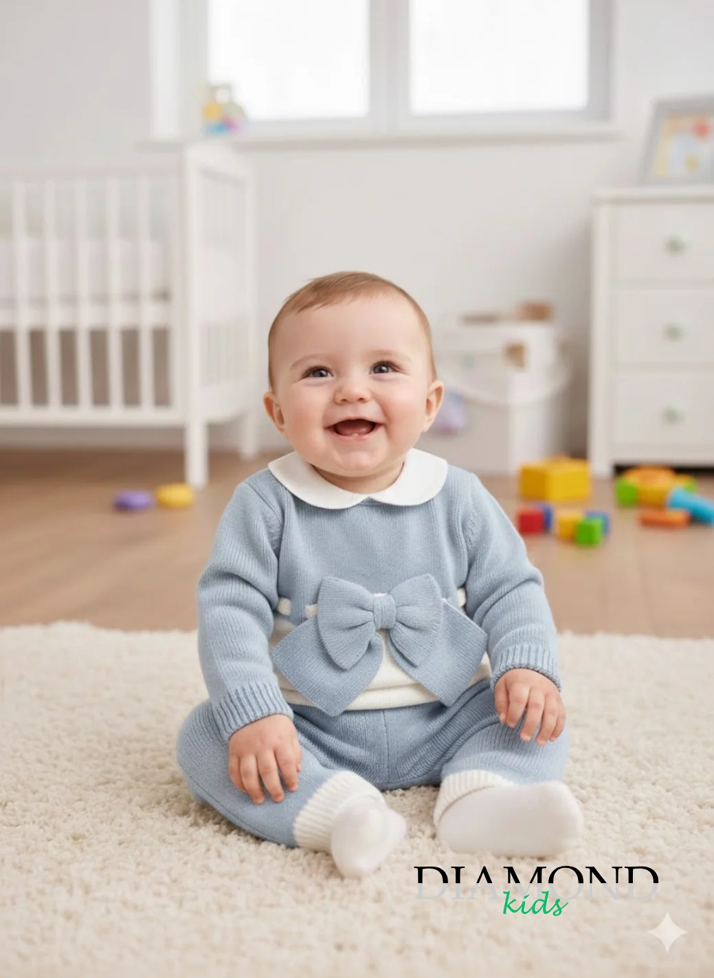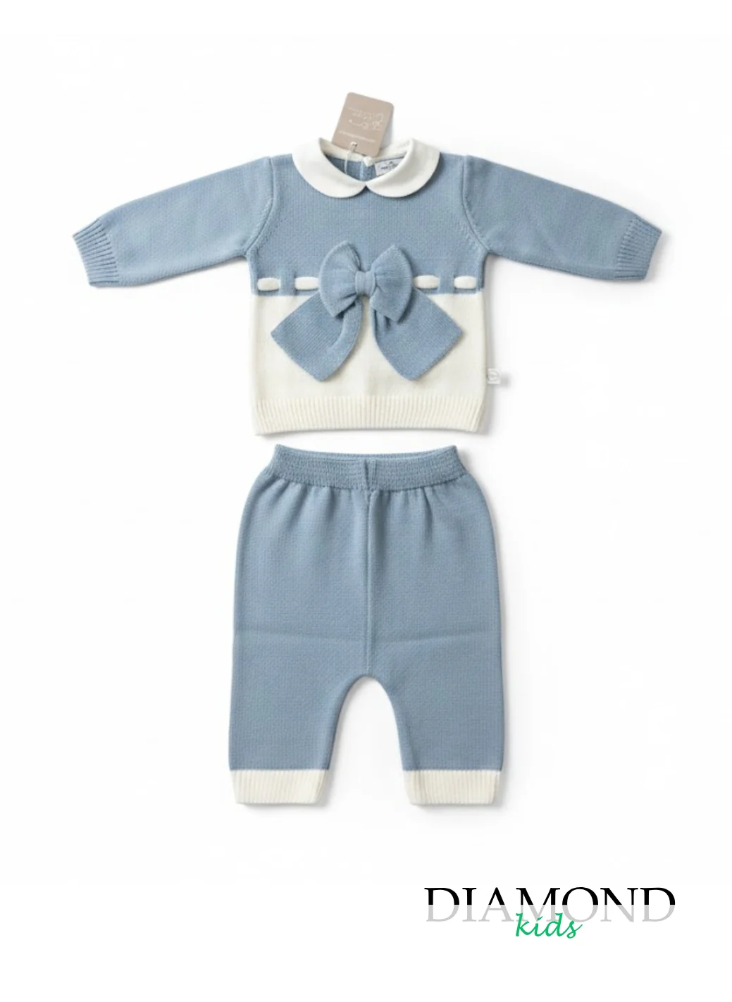 ( stagione Primavera Estate ) ID:NG2029 Clinico in filo di cotone. Chiusura con bottoni sul retro, colletto. Maxi fiocco frontale. Pantalone con elastico. Composizione: cotone 100% Tabella taglie 0/1 mesi = 45-51cm 1/3 mesi = 51-56cm 3/6mesi = 64cm