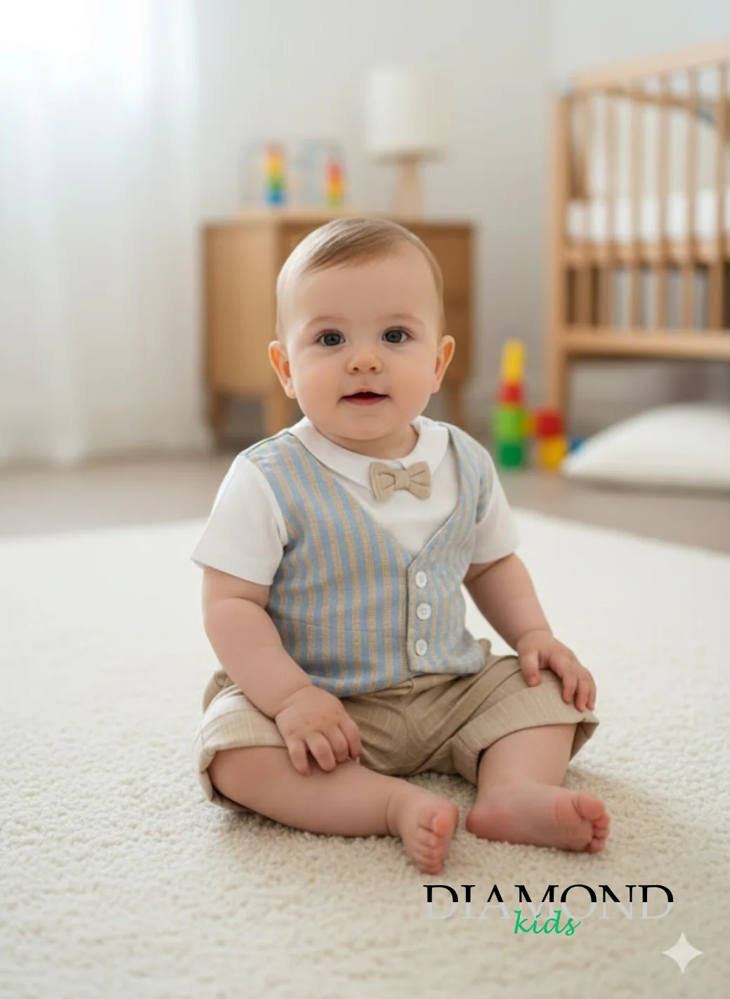 Clinico Neonato Nazareno Gabrielli Panciotto celeste beige righe