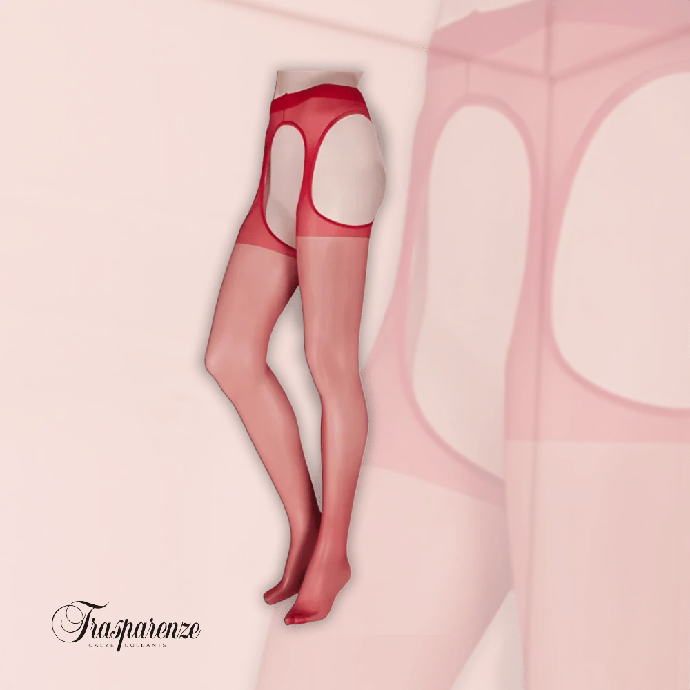 Collant aperto strip panty setificato 15 denari, con reggicalze incorporato, cucitura piatta, fissato, punta invisibile.