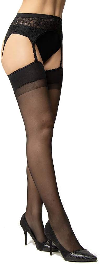 Collant setificato 20 denari, con reggicalze in pizzo incorporato, cucitura piatta, fissato, punta rinforzata