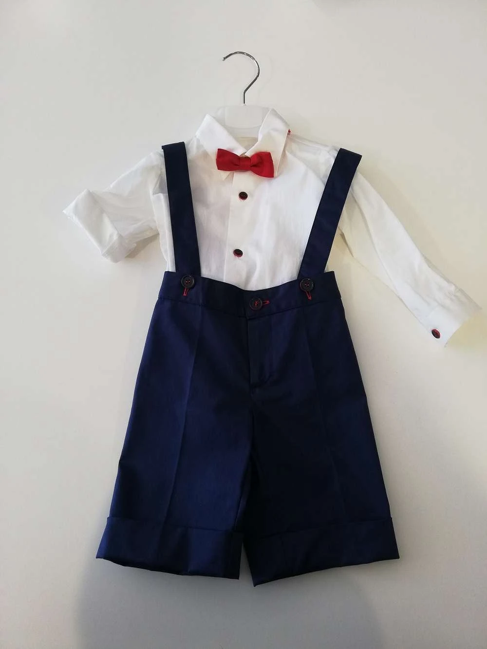 COLORI CHIARI GIACCA QUADRI CAMICIA BIANCA PAPILLON ROSSO PANTALONE ALL’INGLESE BLO CON BRETELLE