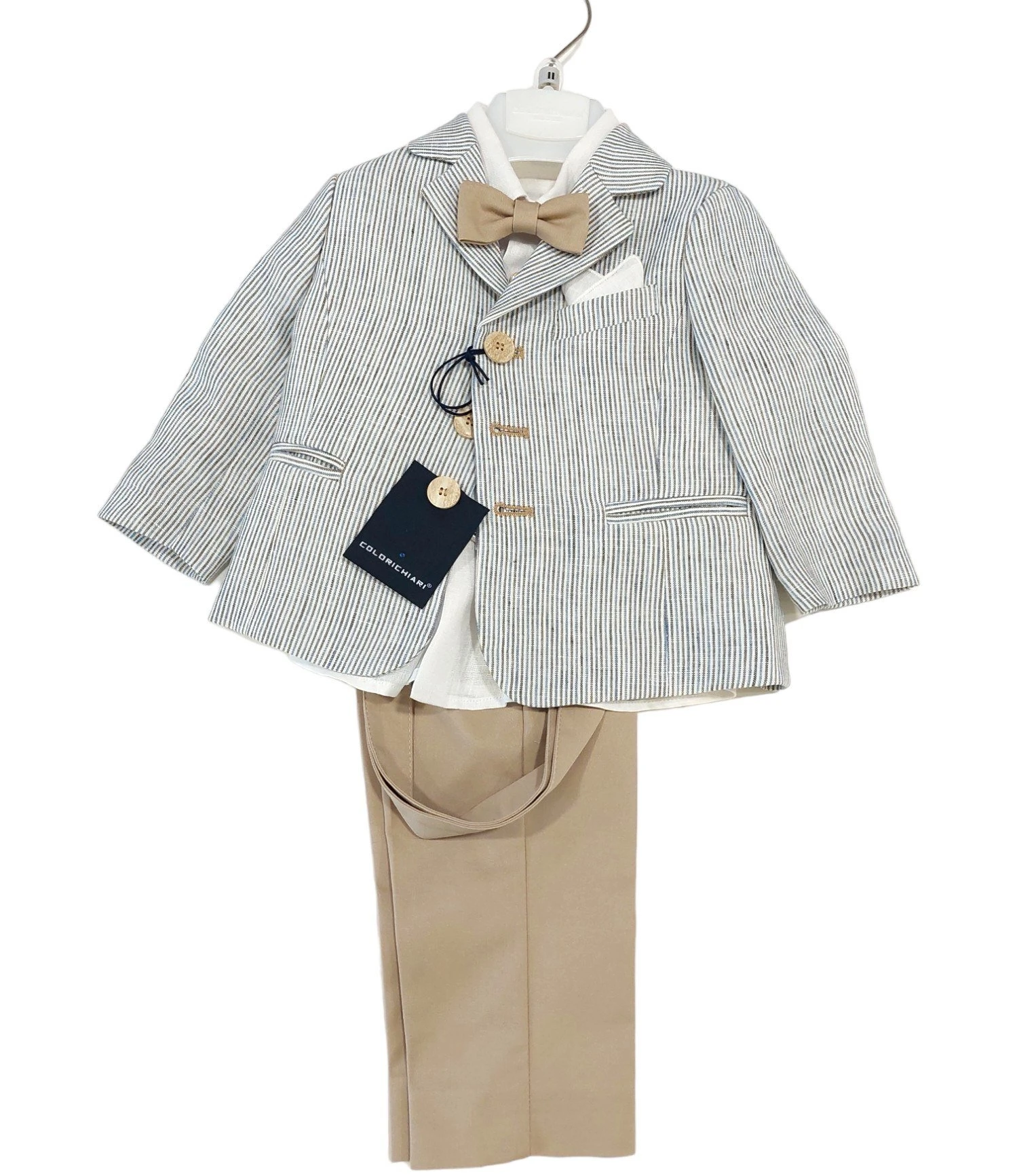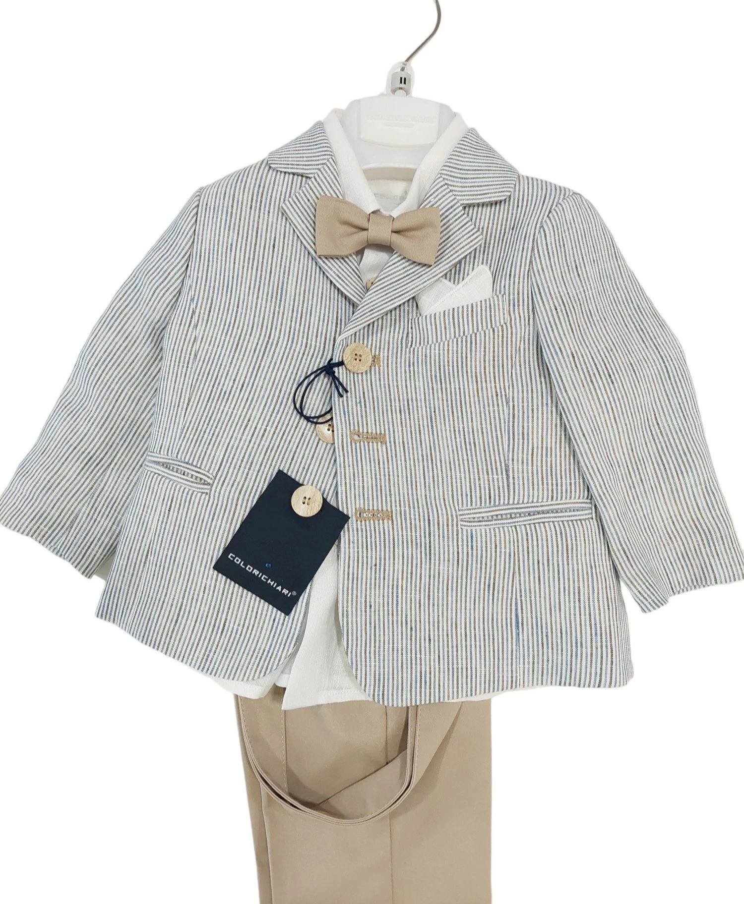 COMPLETO COLORICHIARI GIACCA RIGHE CELESTE/BEIGE