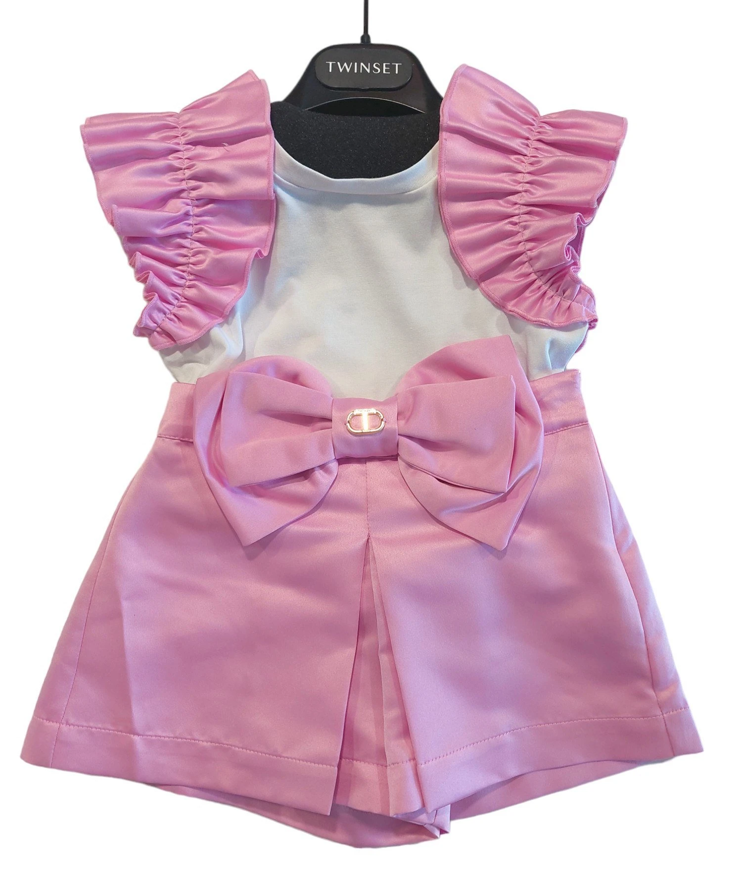 COMPLETO TWINSET SHOR+T-SHIRT VOLANT ROSA