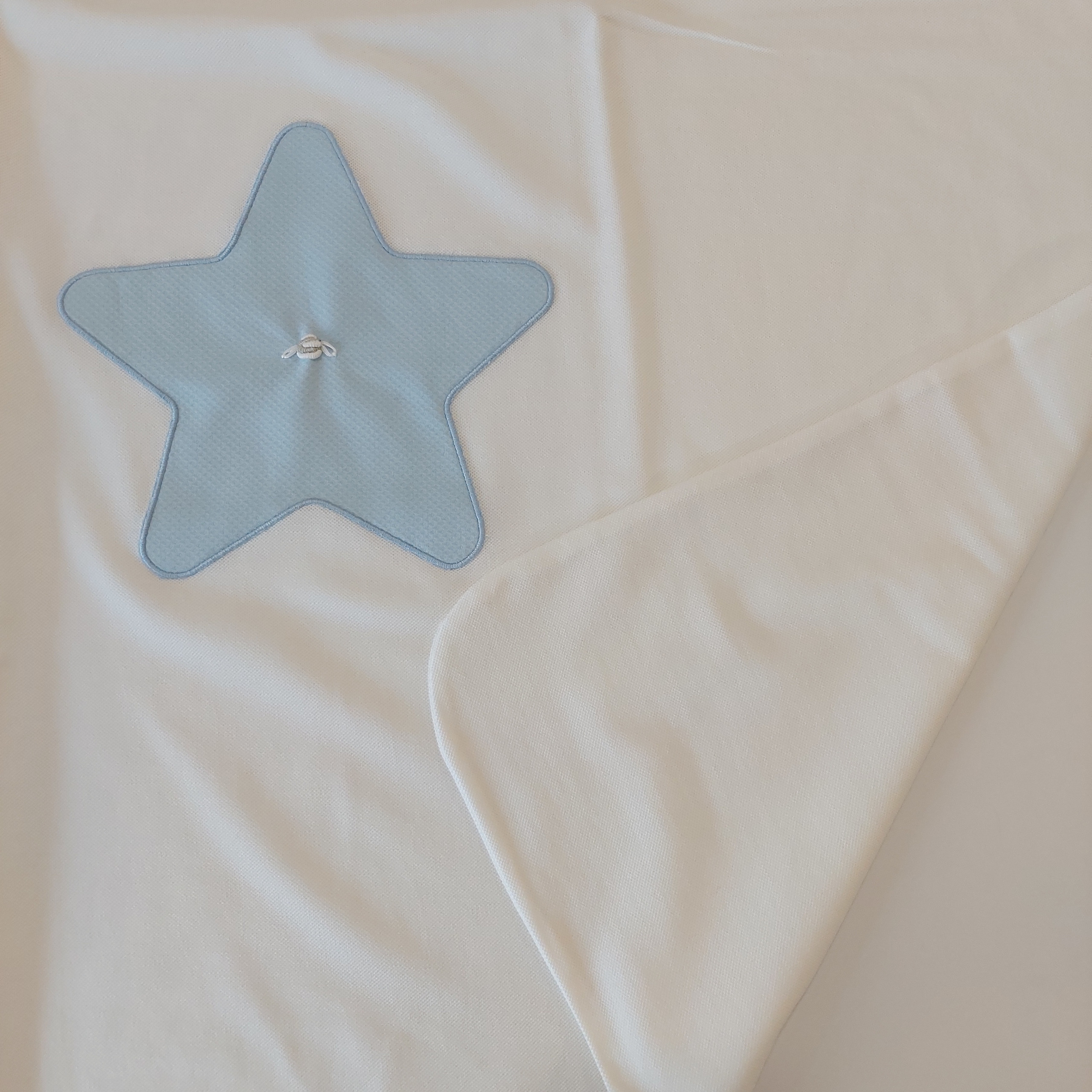 Coperta la stupenderia neonato, punto, milano, bianca con applicazione stella celeste, ricamo ape.