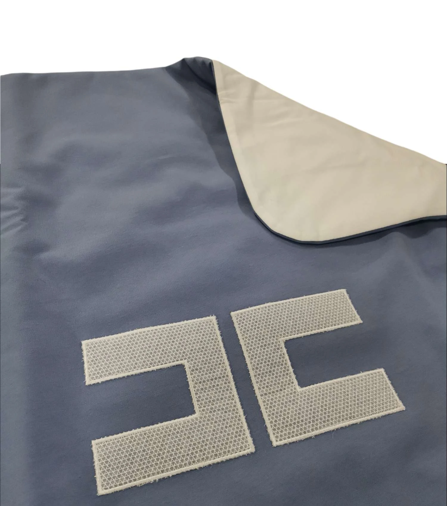Coperta Elisabetta Franchi in cotone estivo, di colore lavanda, con logo ricamato