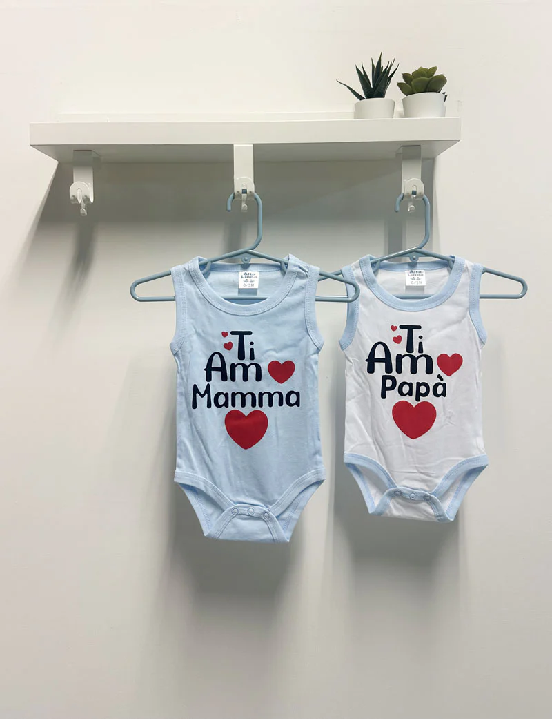 Coppia Body Neonato Ti amo azzurro