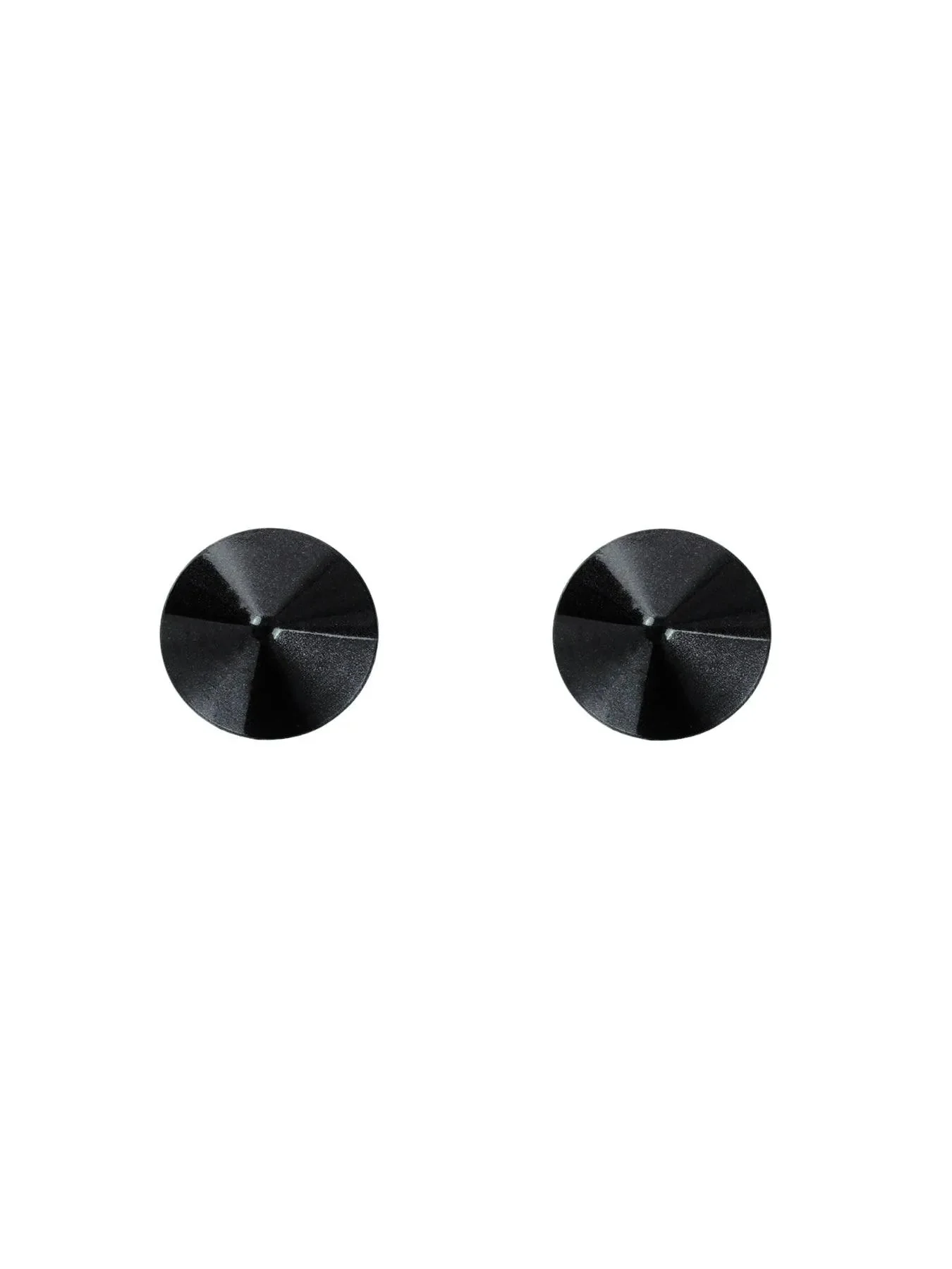 Questi copricapezzoli rotondi in metallo nero sono l’accento ideale per outfit trasparenti e completi di lingerie. La loro finitura nera opaca e la forma scultorea aggiungono un tocco audace ed elegante a qualsiasi look.