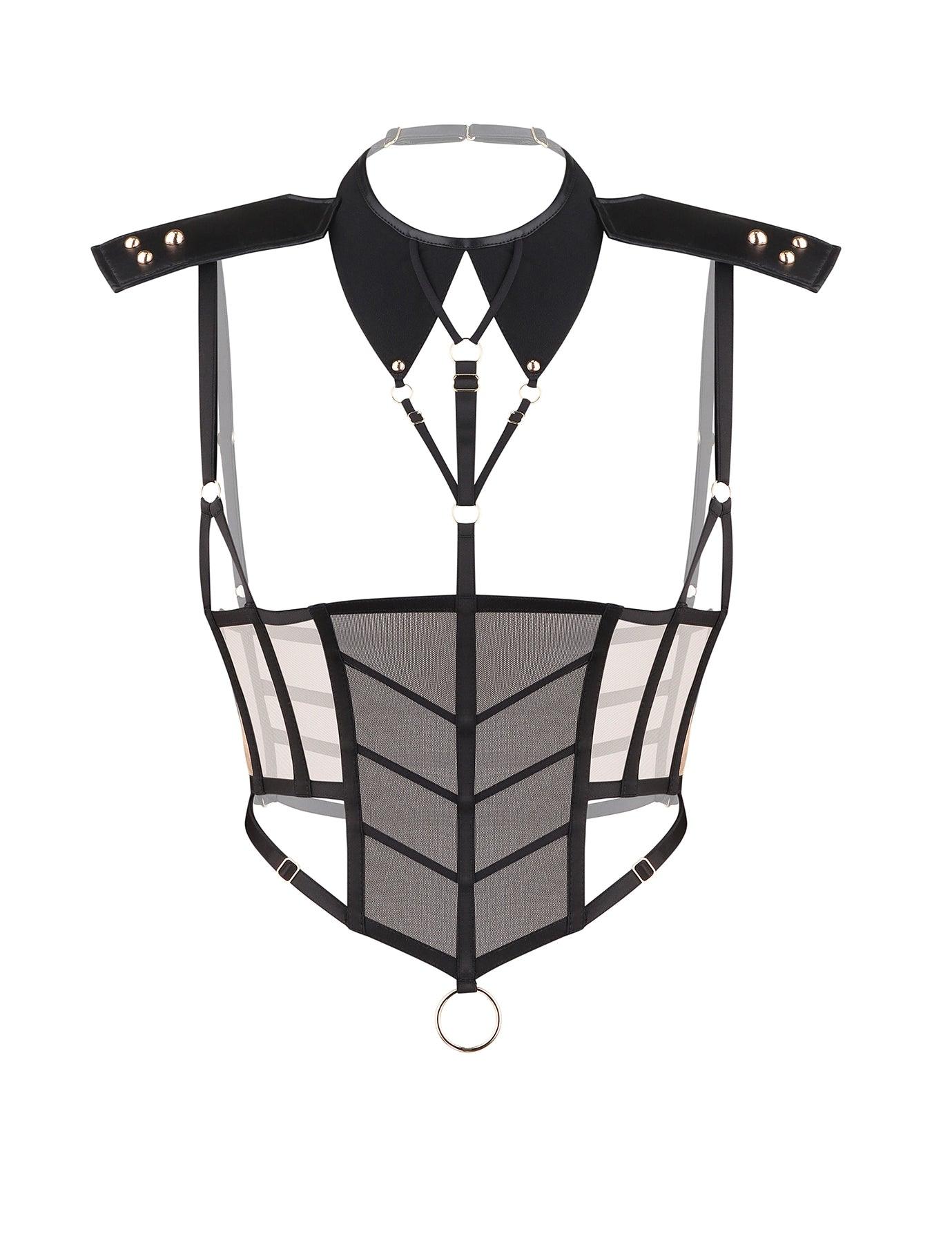 Il set comprende un corsetto, perizoma abbinato e un iconico berretto della polizia, garantendo un look completo e seducente.