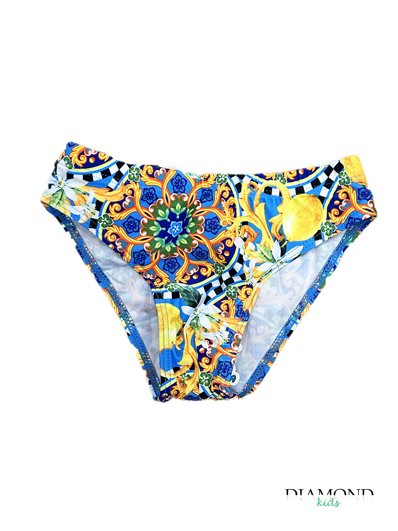 (stagione Primavera Estate) Slip fantasia limoni. Coulisse interna. Composizione:95% poliestere 5% elastane Tabella taglie 3/4anni 99/104cm 5/6anni 111/116cm 7/8anni 123/128cm 9/10anni 134/140cm 11/12anni 145/152cm