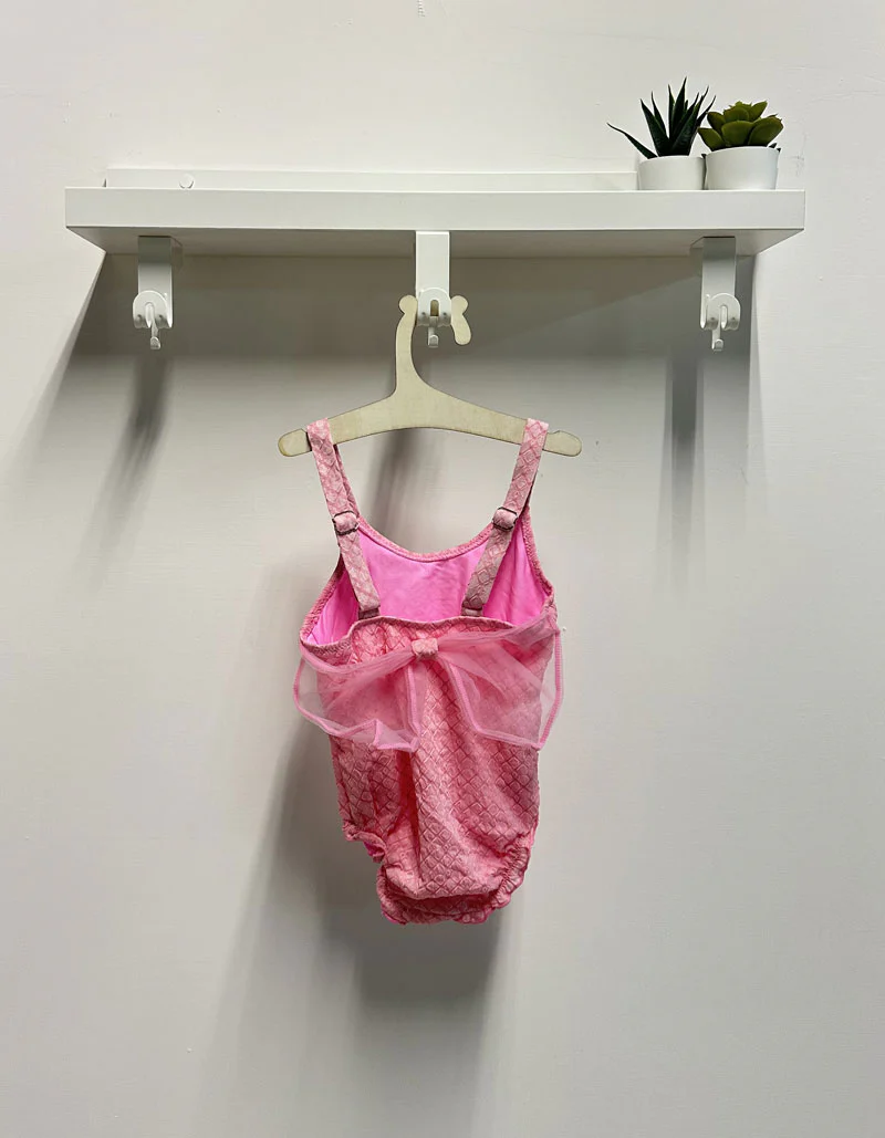 ( stagione Primavera Estate ) Costume stile sirenetta. Bretelle regolabili, frou frou. Fiocco sul retro. Composizione : 82% poliammide 18% elastane Tabella taglie 0-6 mesi 50-68cm 6-12 mesi 68-80cm 12-18 mesi 80-92cm 18-24 mesi 92-96cm