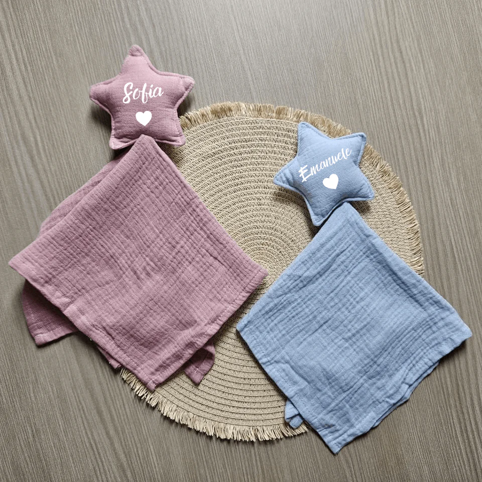 Un dou dou morbido, sicuro e completamente personalizzabile con il nome del bambino. Realizzato per diventare il primo amico del cuore del neonato, perfetto da stringere durante la nanna e nei momenti di passaggio. Disponibile in rosa delicato e azzurro polvere, colori pensati per rassicurare e trasmettere serenità.