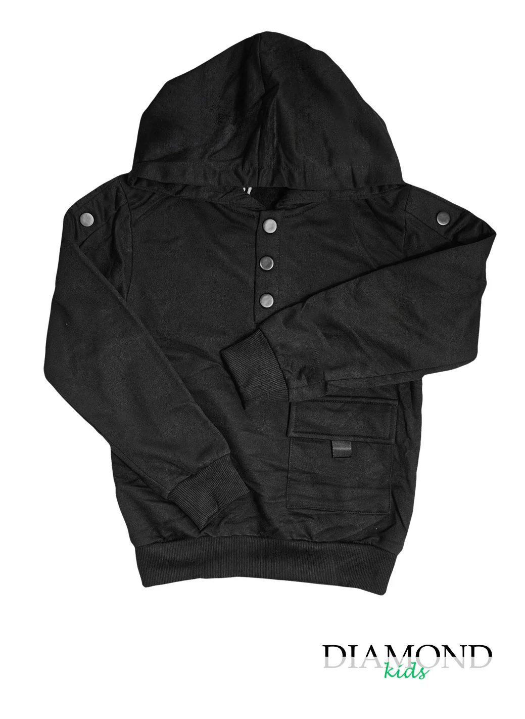 ( stagione Autunno Inverno ) Felpa con cappuccio. Orli a costine. Dettagli di bottoncini. Composizione: 65% cotone 35% poliestere Tabella taglie 4 anni 104cm 6 anni 111cm 8 anni 128cm 10anni 140cm 12anni 152cm 14anni 164cm 16anni 172cm