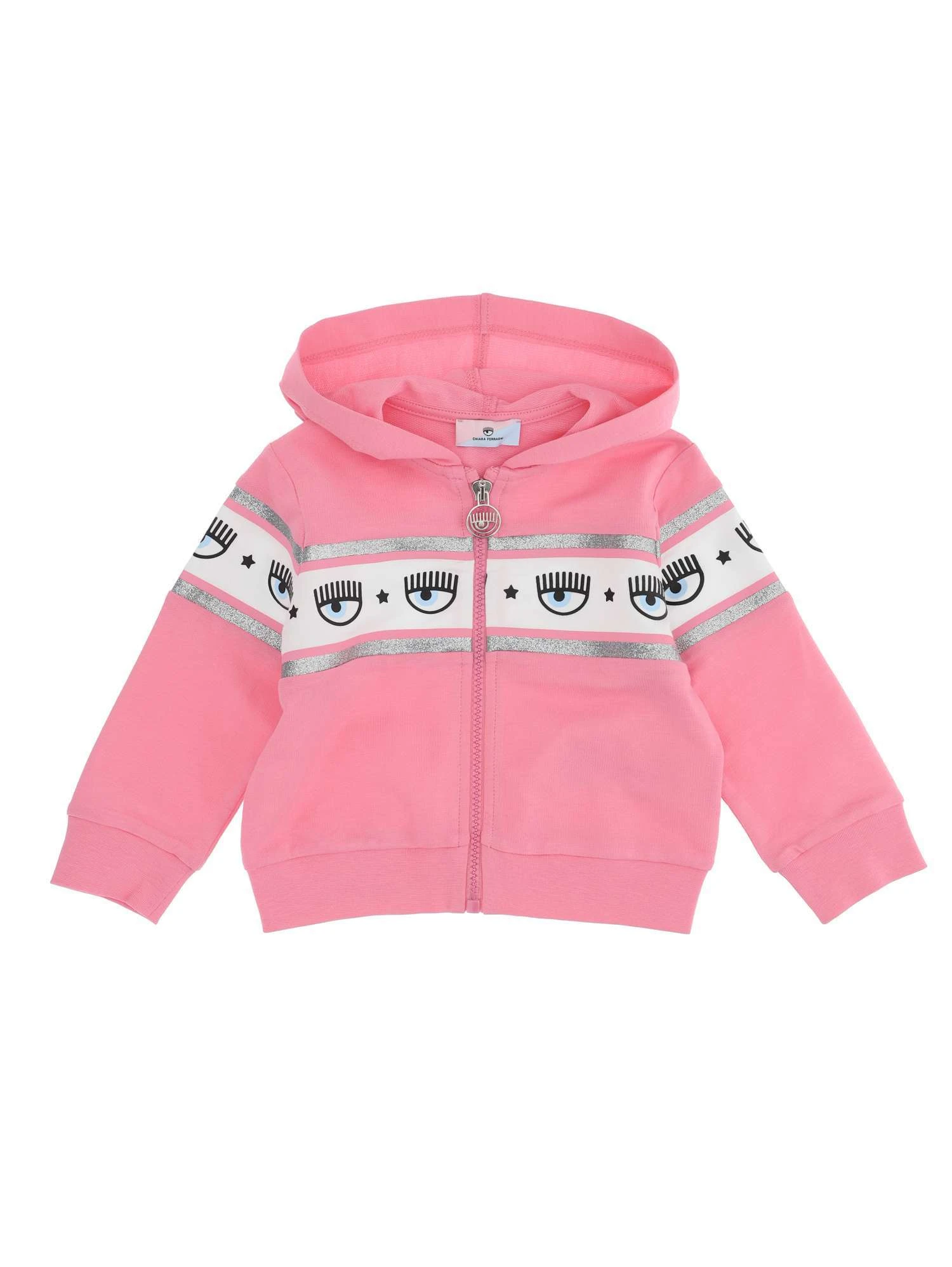 felpa chiara ferragni rosa neonata cotone con zip rosa banda stampata logomania