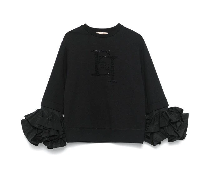 FELPA ELISABETTA FRANCHI CON MANICHE IN TAFFETA’ E APPL. STRASS FELPA NERO