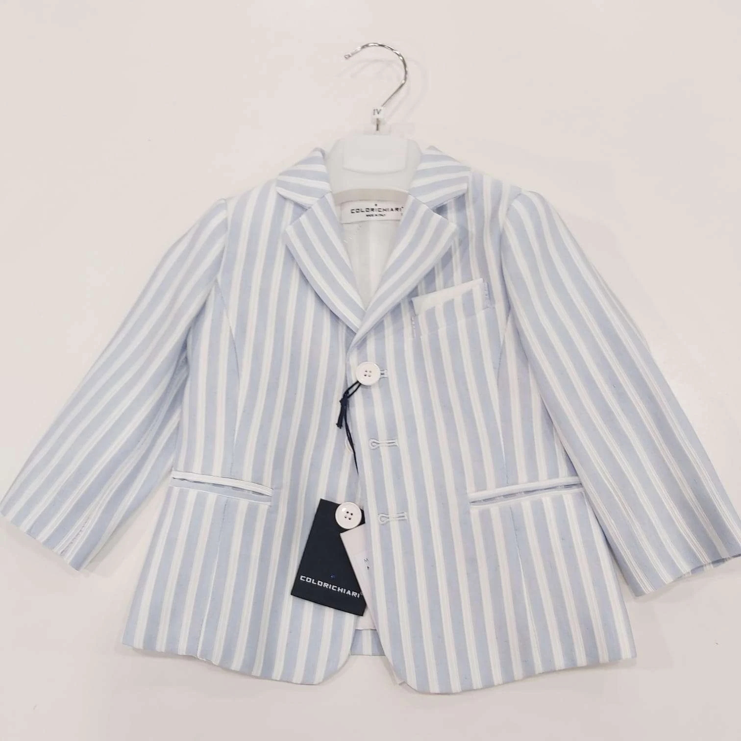 Giacca in lino a righe bianca e celeste
