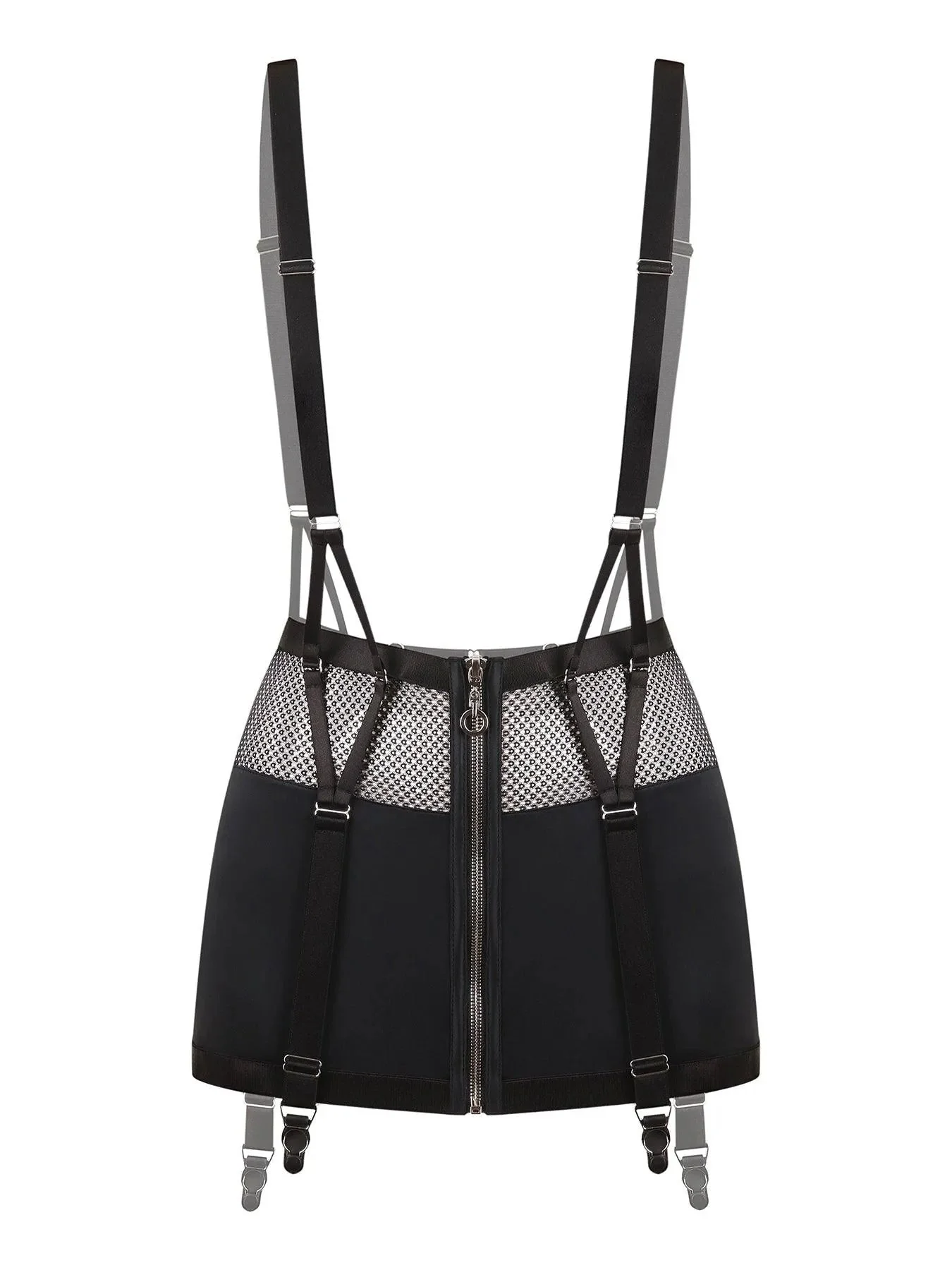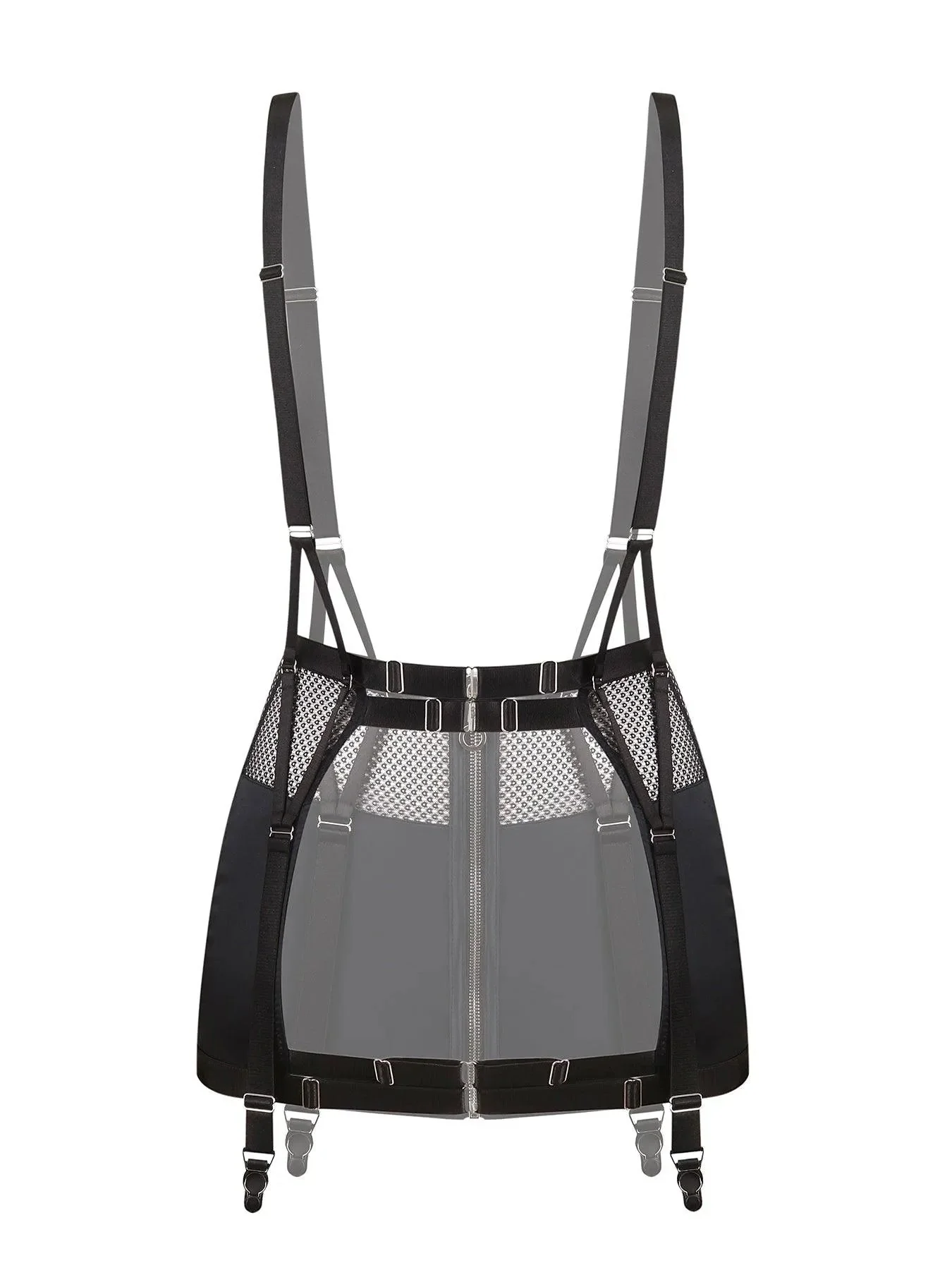 Gli elementi sono cuciti con materiali ipoallergenici: seta elasticizzata e rete. Il set include: