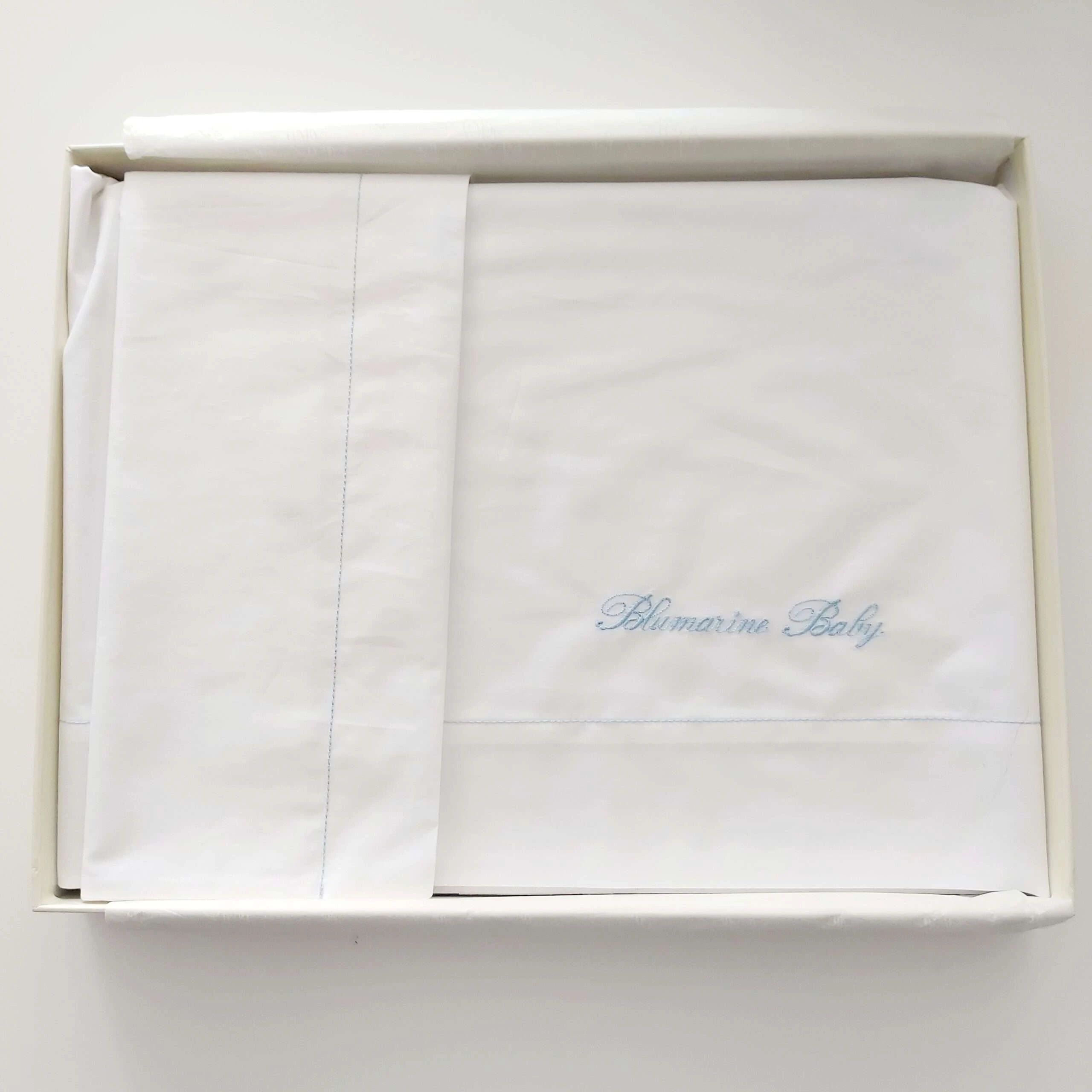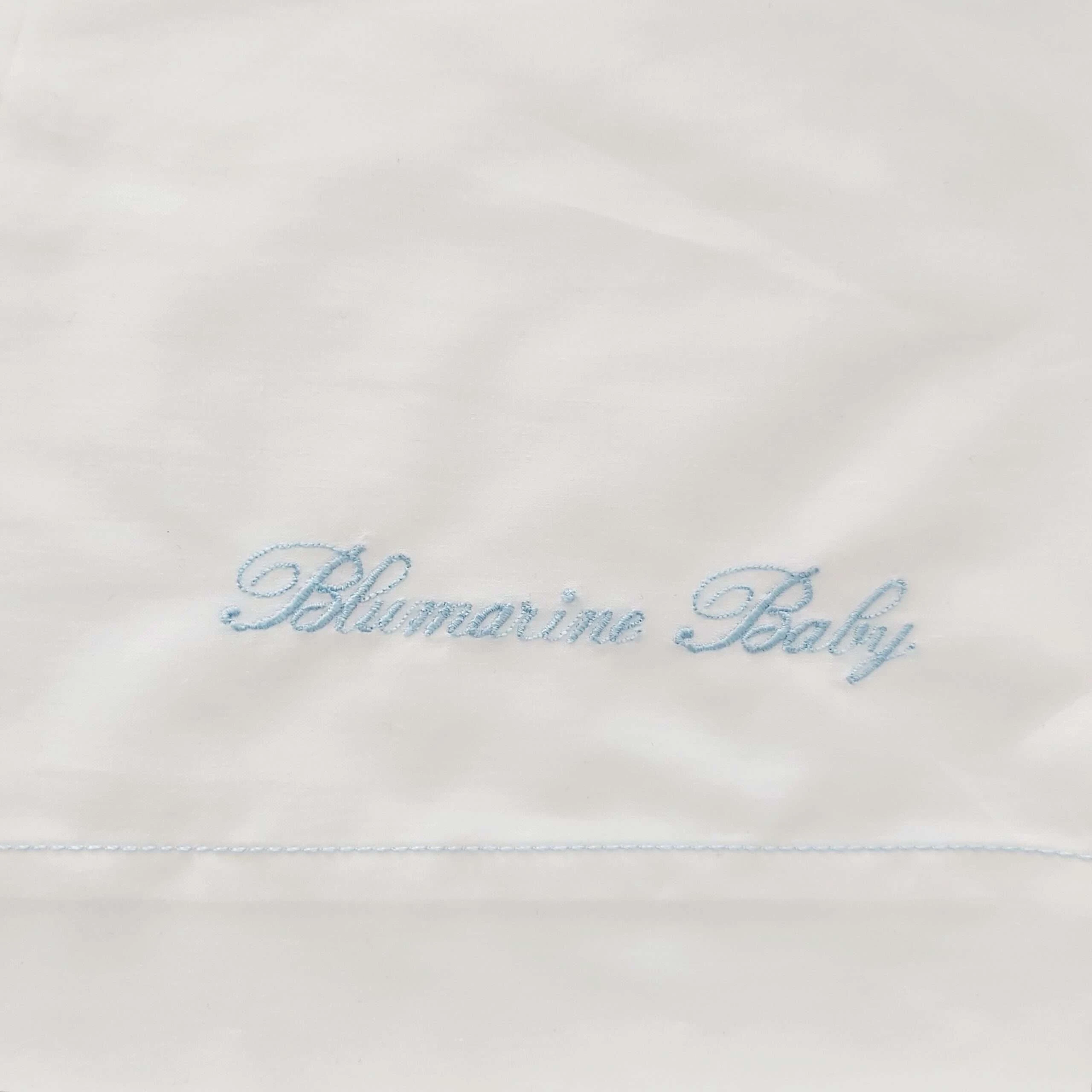 Completo Lenzuola tinta unita con logo ricamato Set 3 pezzi formato da: Lenzuolo sopra 120×180 cm tinta unita con ricamo e logo con cristalli swarovsky Federa 60×40 cm a 2 volani a sacchetto con bordo larerale Lenzuolo sotto 70×40 cm con angoli