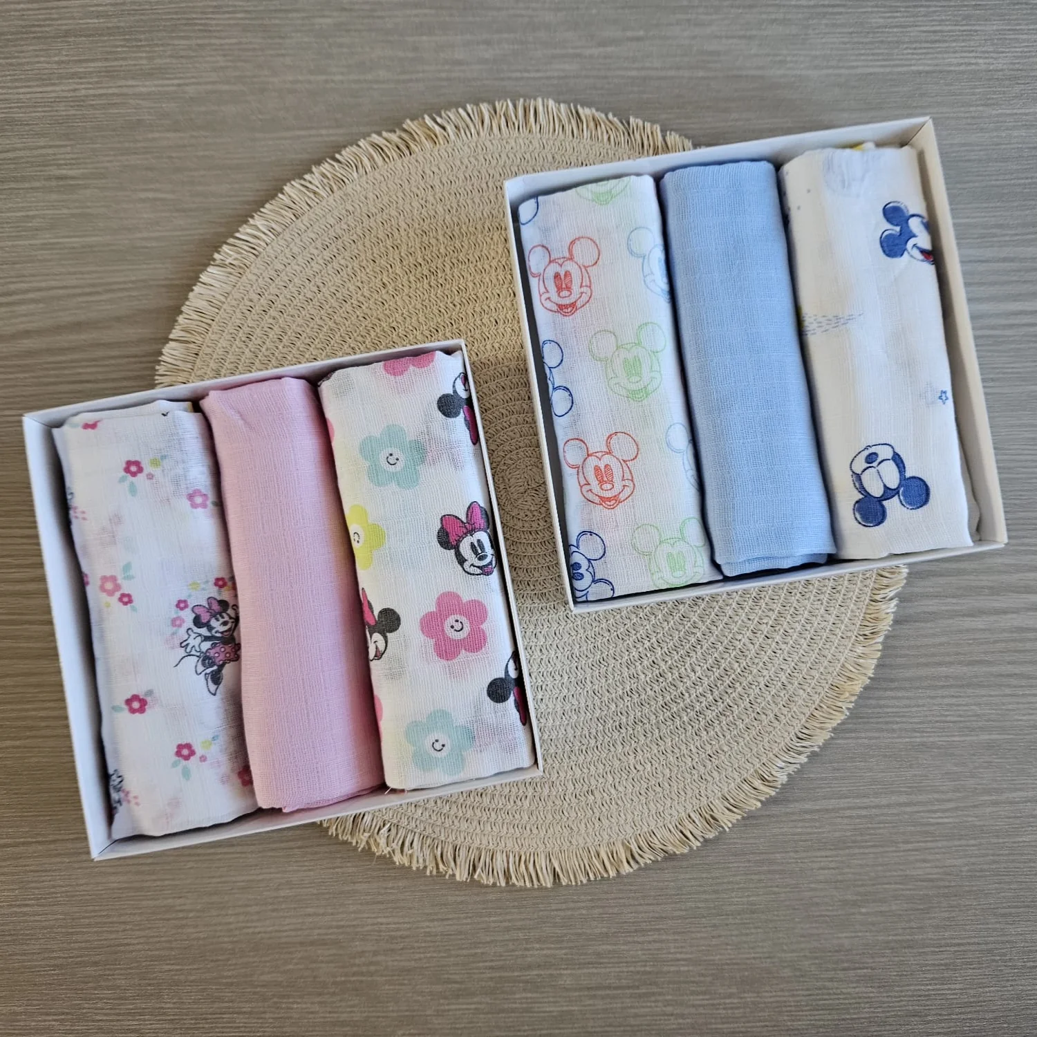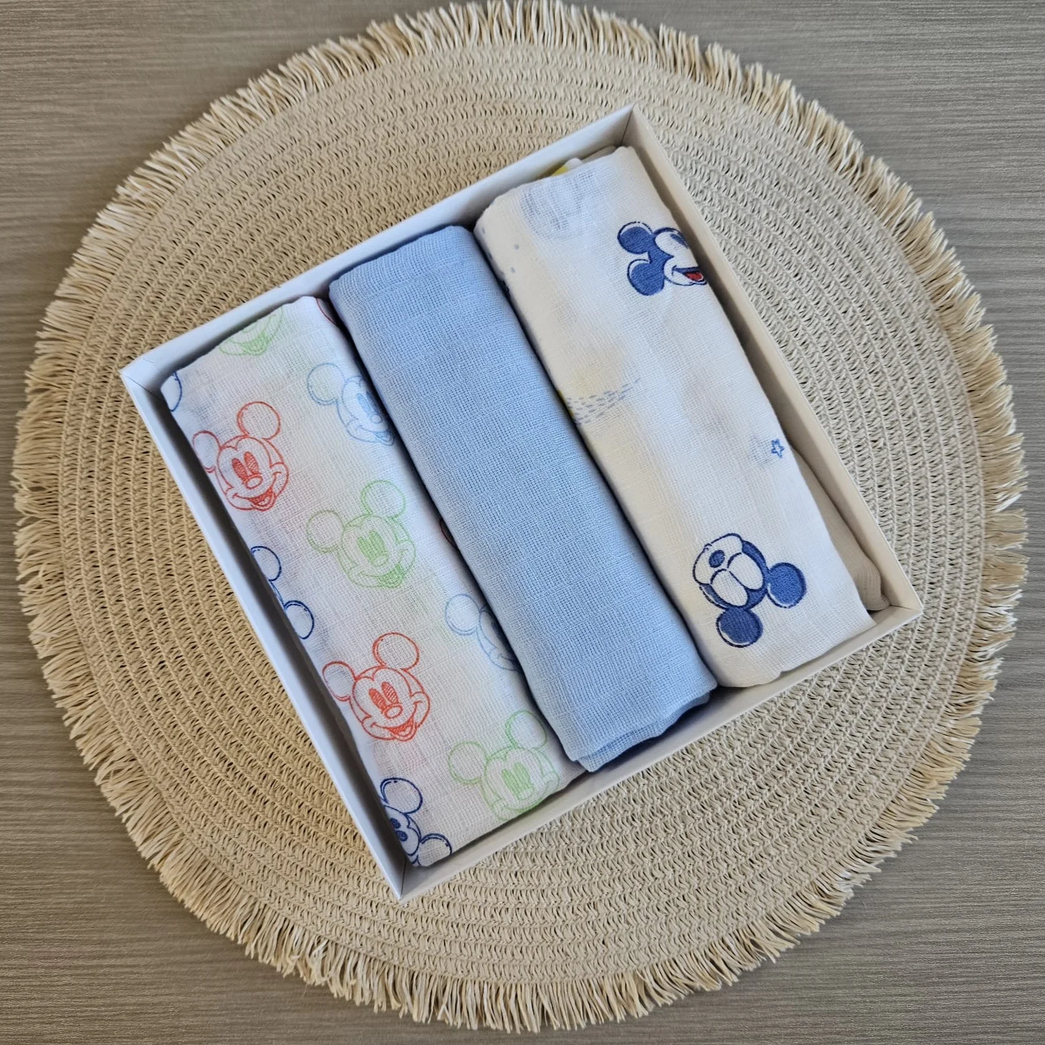 Il Set Mussole Neonato 3 Pezzi è un prodotto essenziale per ogni neonato. Realizzate in 100% cotone , offrono il massimo comfort per la pelle delicata del tuo bambino, mantenendo il neonato al caldo e protetto in ogni momento. Grazie alla loro versatilità, diventano un accessorio indispensabile per le mamme che desiderano praticità, senza rinunciare alla qualità e al tocco elegante delle fantasie Disney.