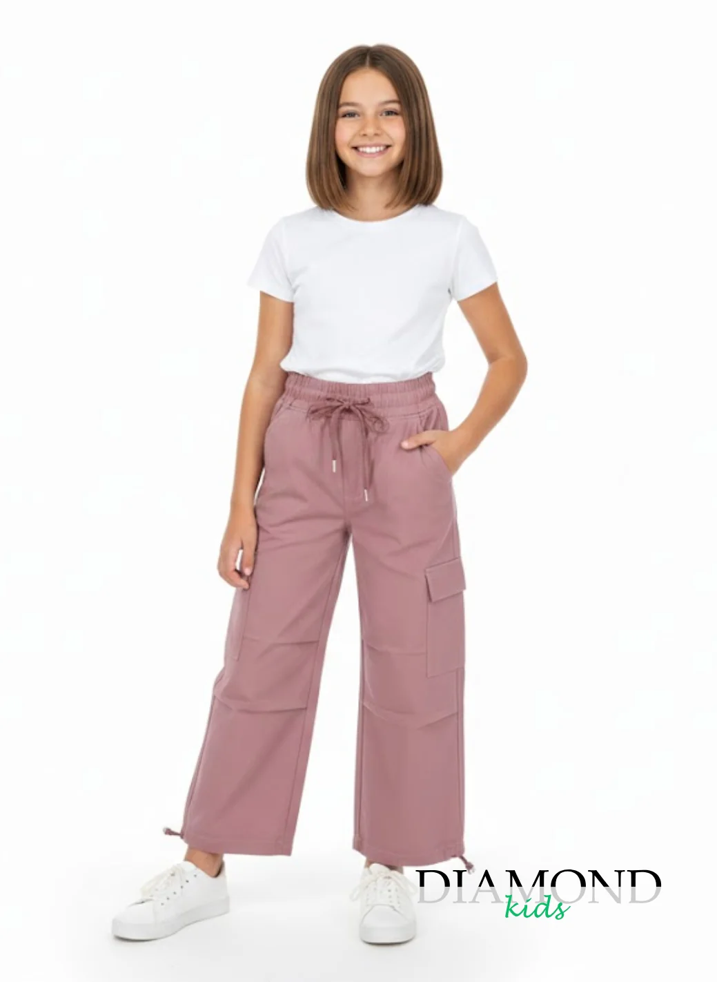 Pantalone Bambina Cargo coulisse rosa antico