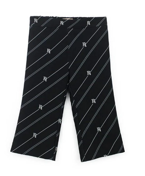 PANTALONE ELISABETTA FRANCHI IN CREPE STAMPA RIGA EF NERO/BURRO