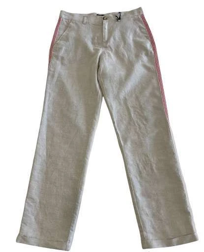 pantalone fay bambino beige lino e cotone banda in grogrè bianco e rosso laterale