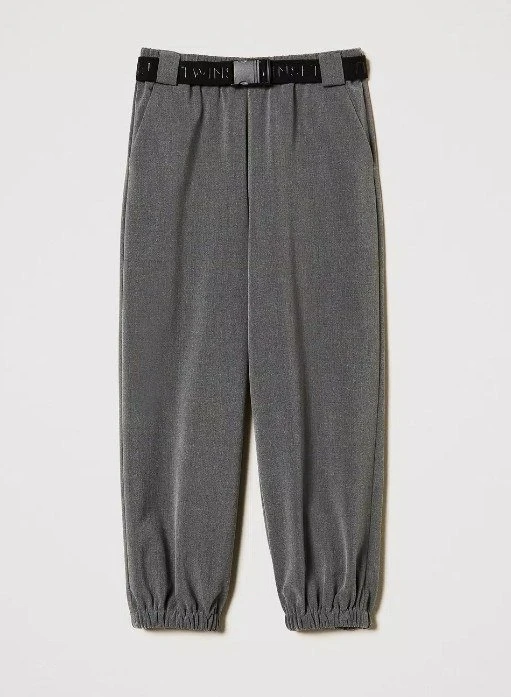 PANTALONE TWINSET GRIGIO FLANELLA ELASTICO E CINTA