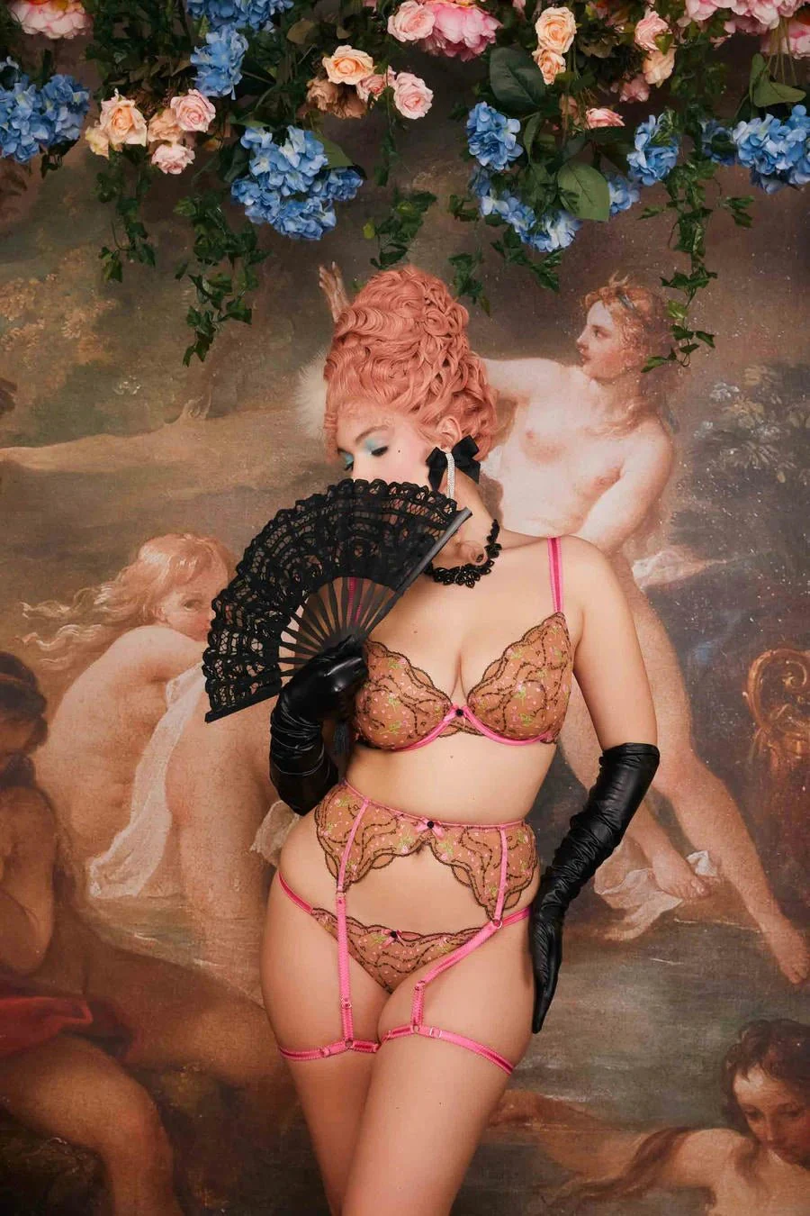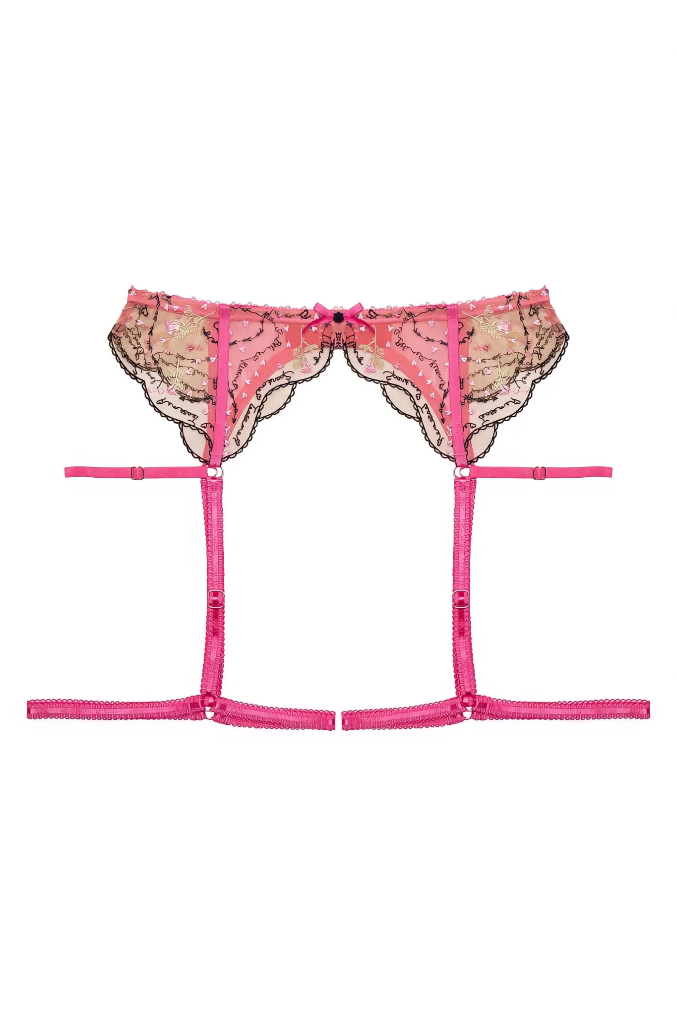 È tempo di mettersi sotto i riflettori e di non essere più una timida, una volta sola e floreale! Un modello in edizione limitata in onore del 20° compleanno di Playful Promises, il reggicalze “Spank Me Pink” presenta una rete trasparente color carne ricamate con rose, cuoricini e (per chi si avvicina abbastanza da leggere!) sfacciati inviti a “sculacciarmi”. Il rosa acceso dei lacci si completa con un cinturino alla gamba che può sostituire le calze.