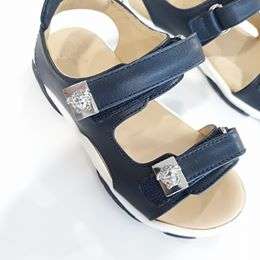 sandali in pelle blu con accessori color argento chiusura con doppio strappo