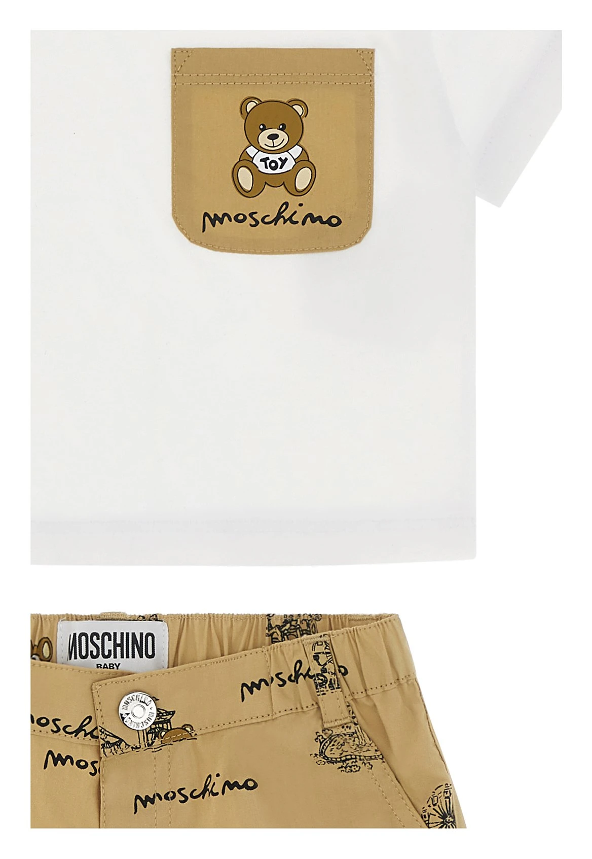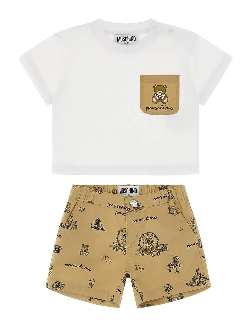 SET MOSCHINO T-SHIRT + SHORT BEIGE STAMPATO