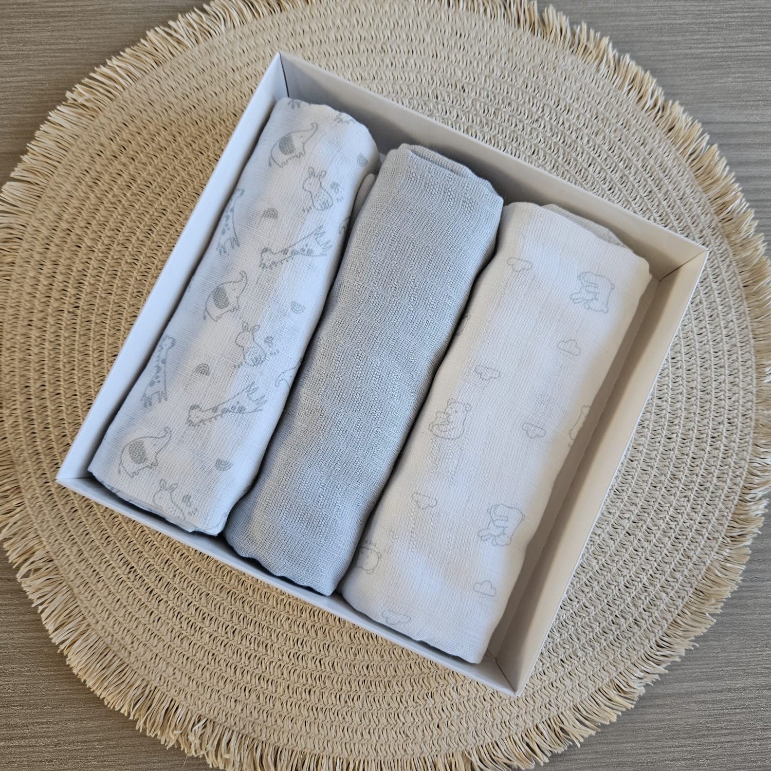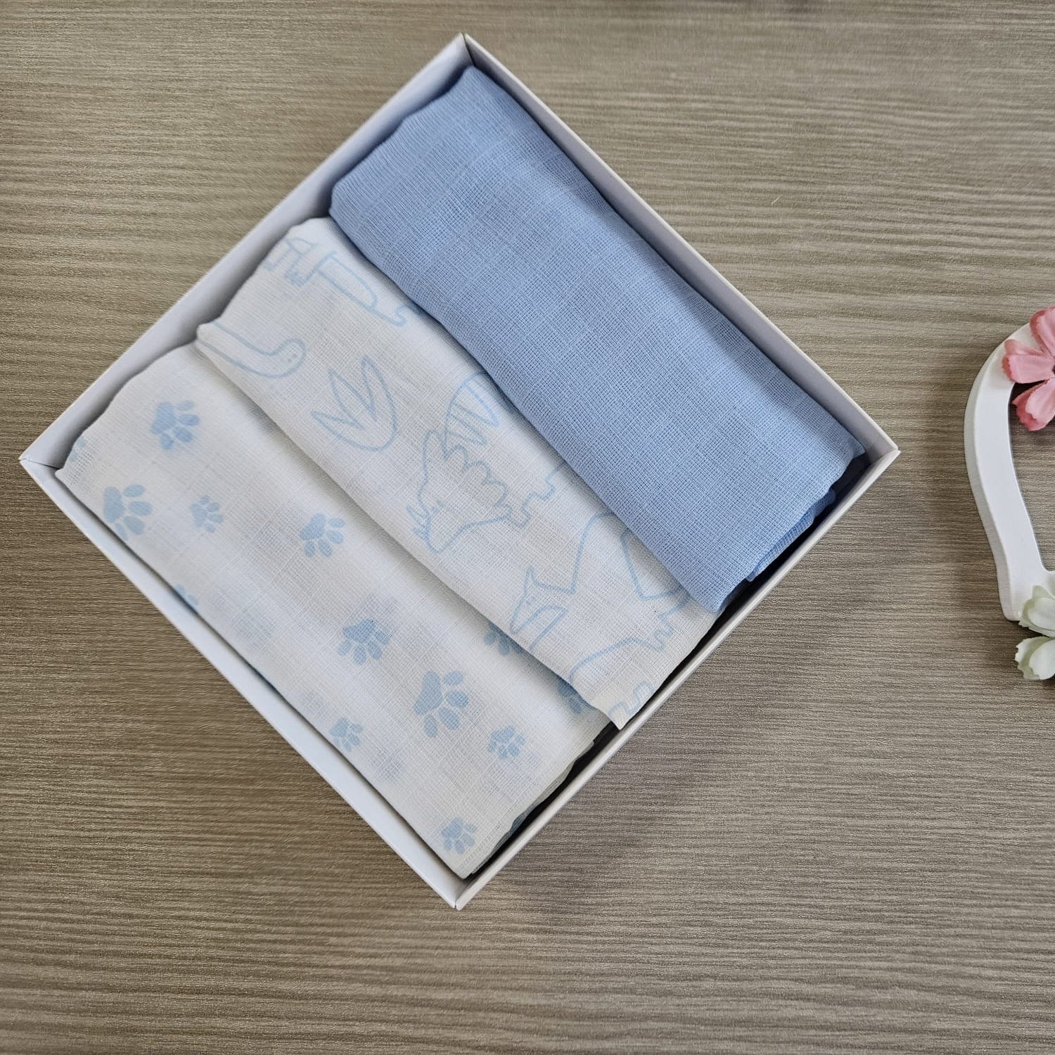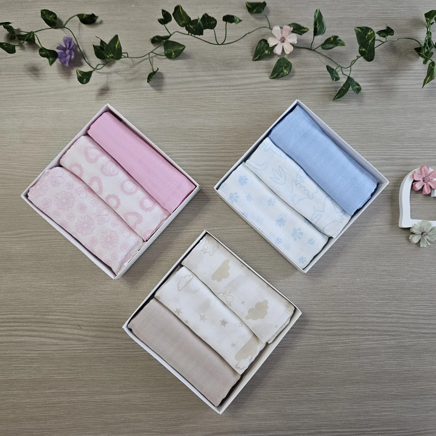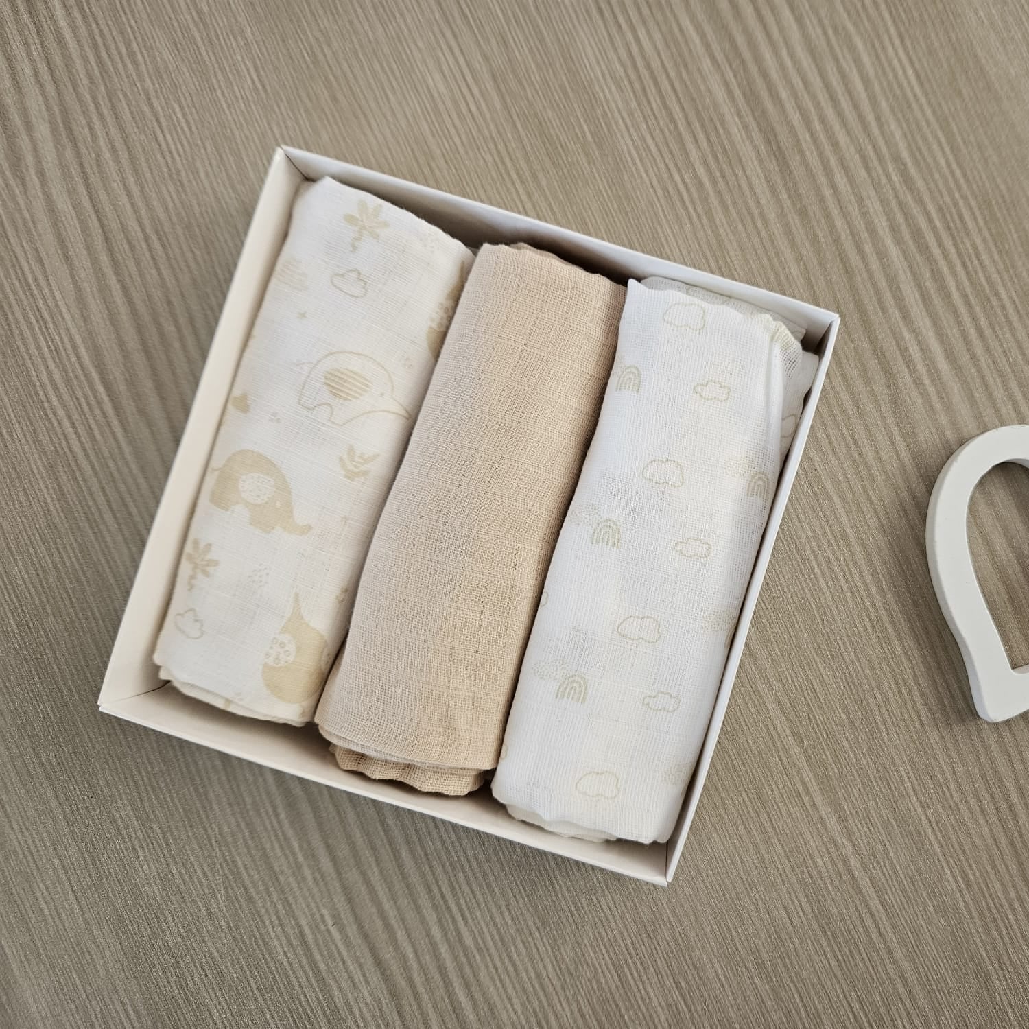 - Set da 3 pezzi : Ogni mussola presenta una fantasia diversa, per un tocco di stile anche nei piccoli dettagli.