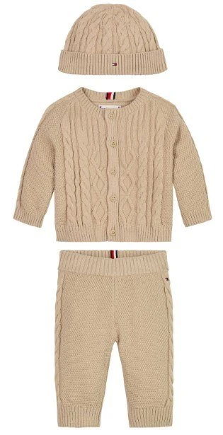 SET TOMMY HILFIGER BEIGE LAVORATO  CAPPELLO + MAGLIONCINO+ PANTALONE