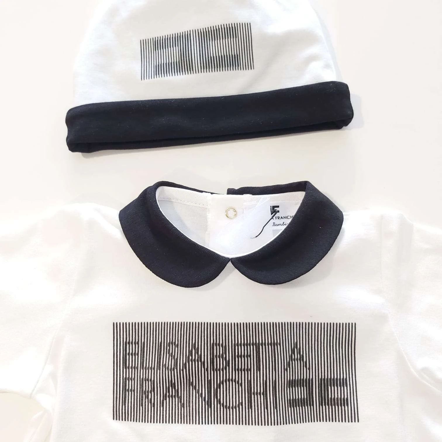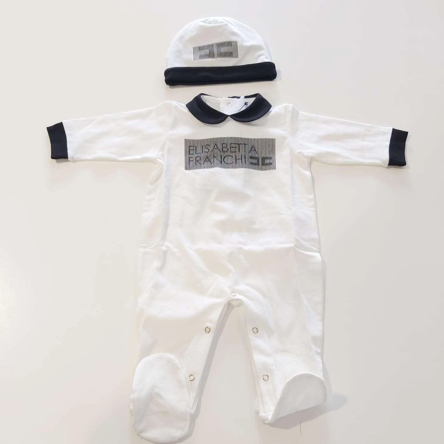 Set Tutina bianca con logo stampato e colletto cappellino coordinato