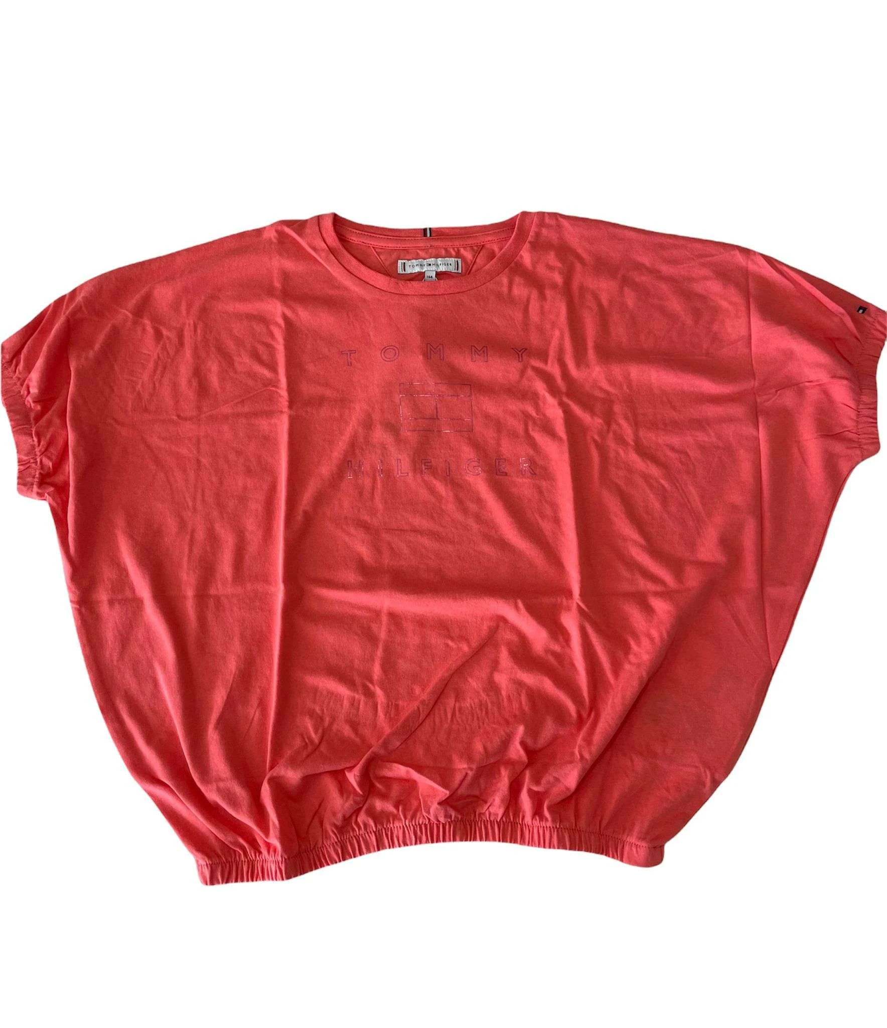 maglia tommy hilfiger bambina con logo sul davanti, cotone pesca , logo stampato