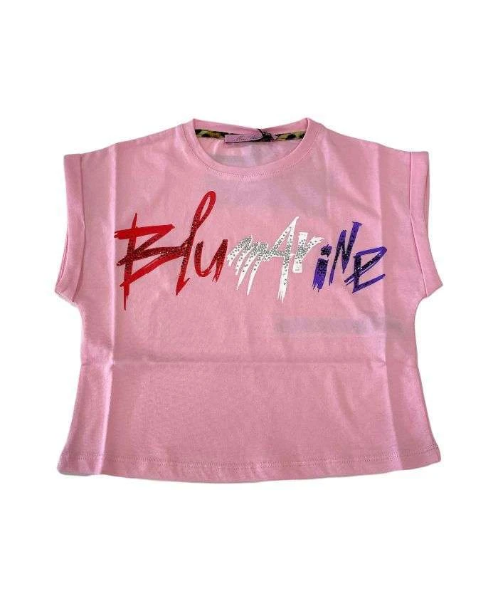 t-shirt blumarine cotone bambina rosa logata