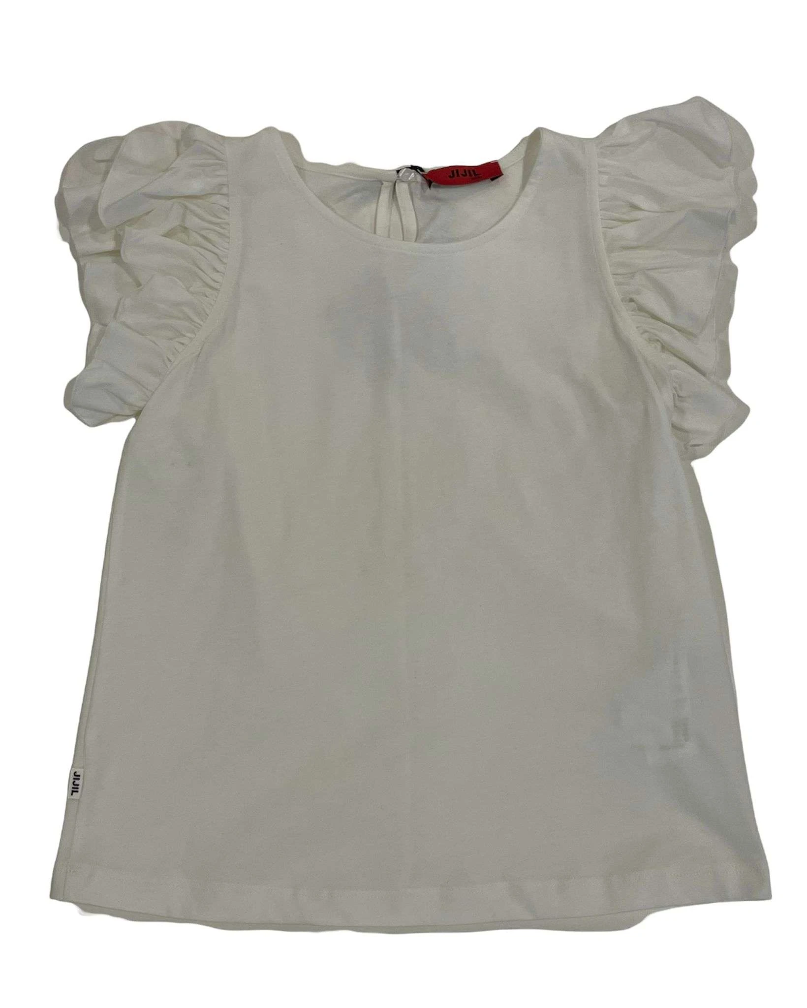 t-shirt jijil bambina bianca in cotone maniche rouge chiusura con bottone dietro