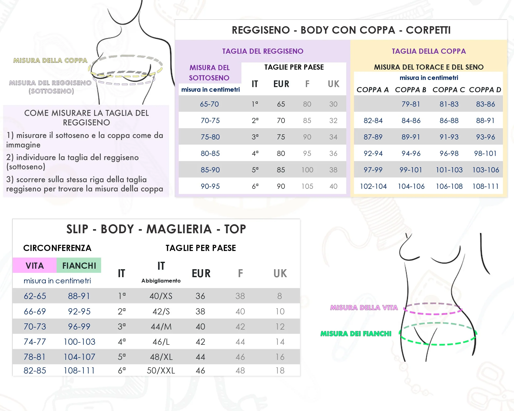 La vestibilità corrisponde alle taglie italiane come da tabella allegata