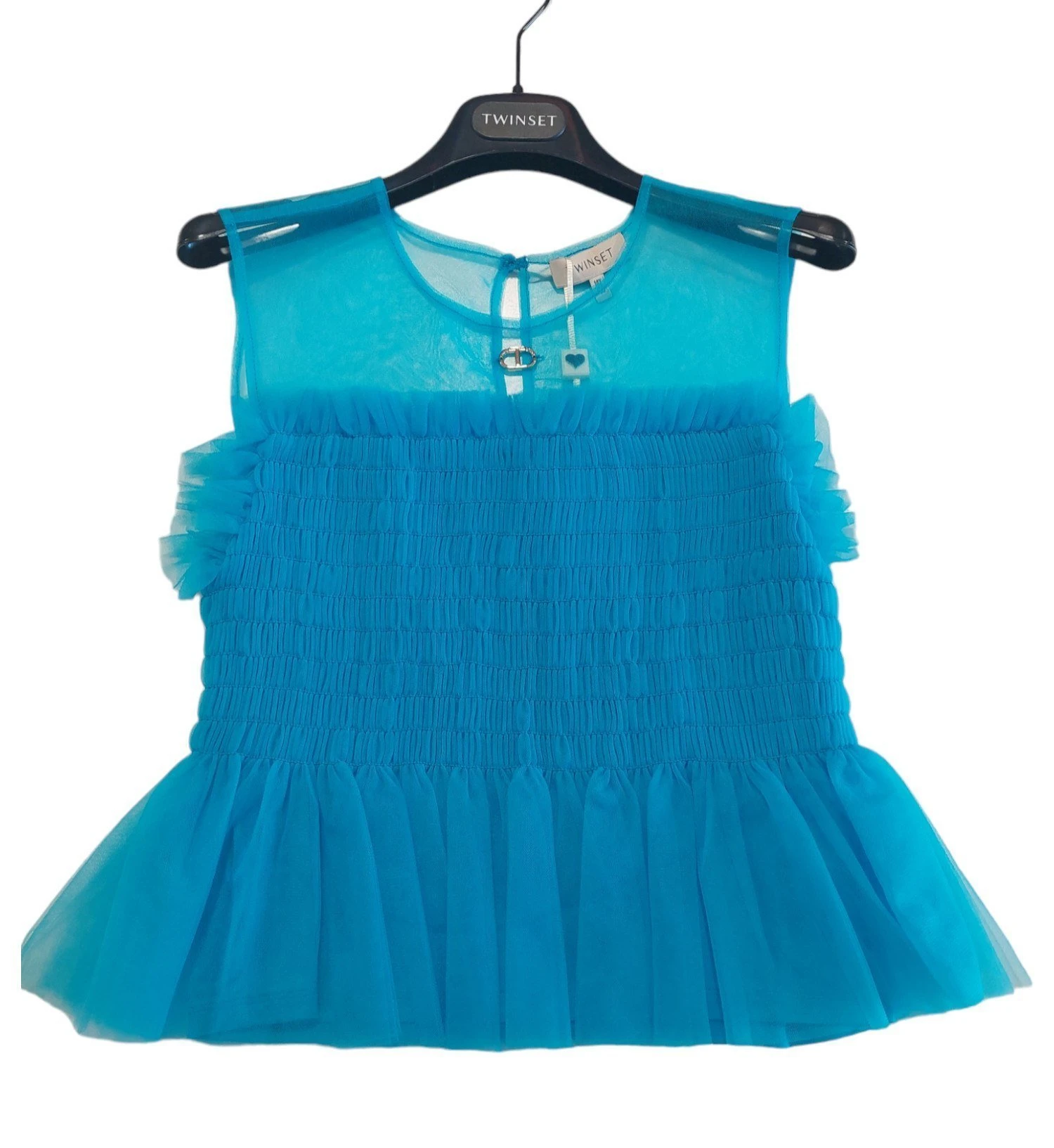 TOP TWINSET TULLE CELESTE
