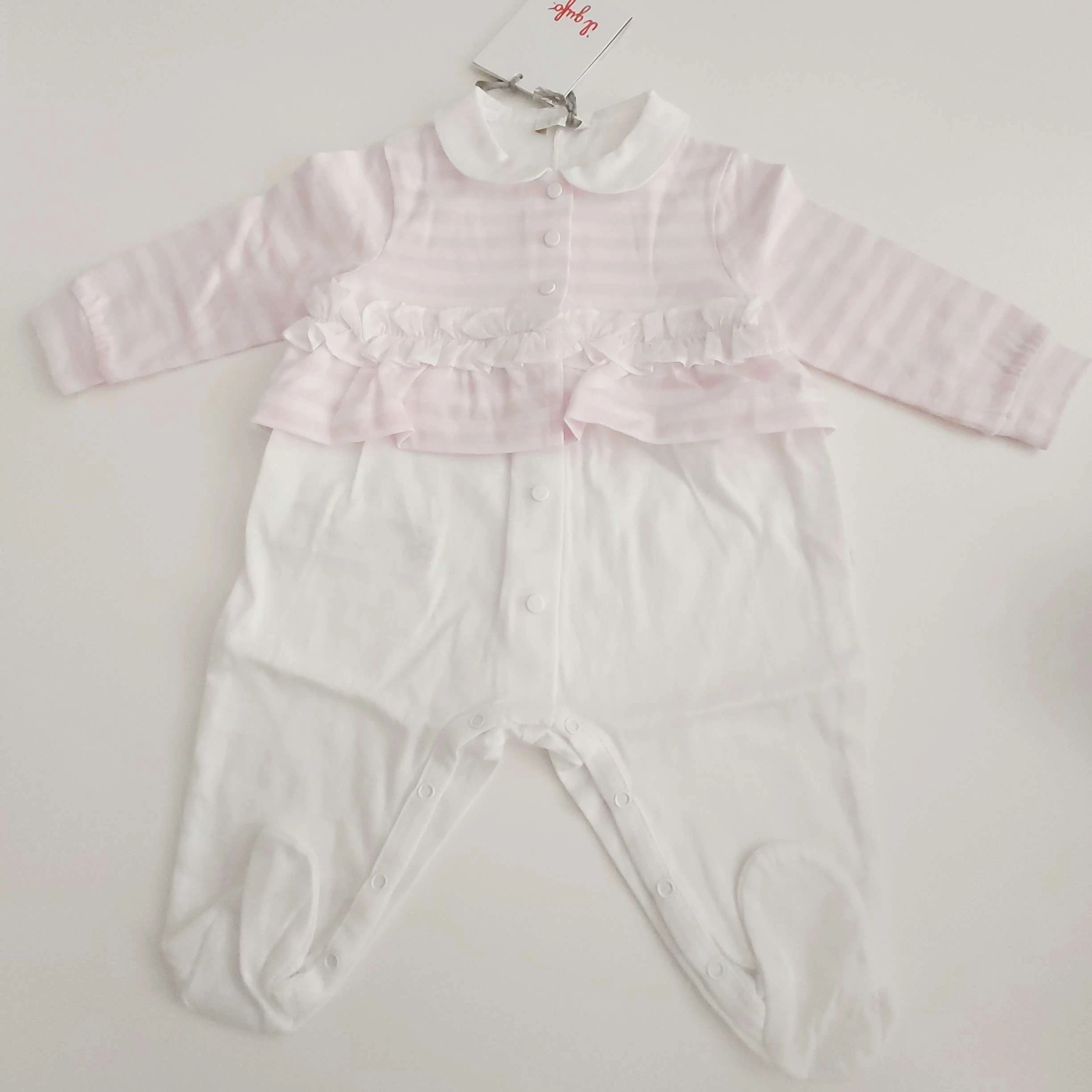Tutina bianca in cotone Parte superiore a righe rosa con piccola rouge
