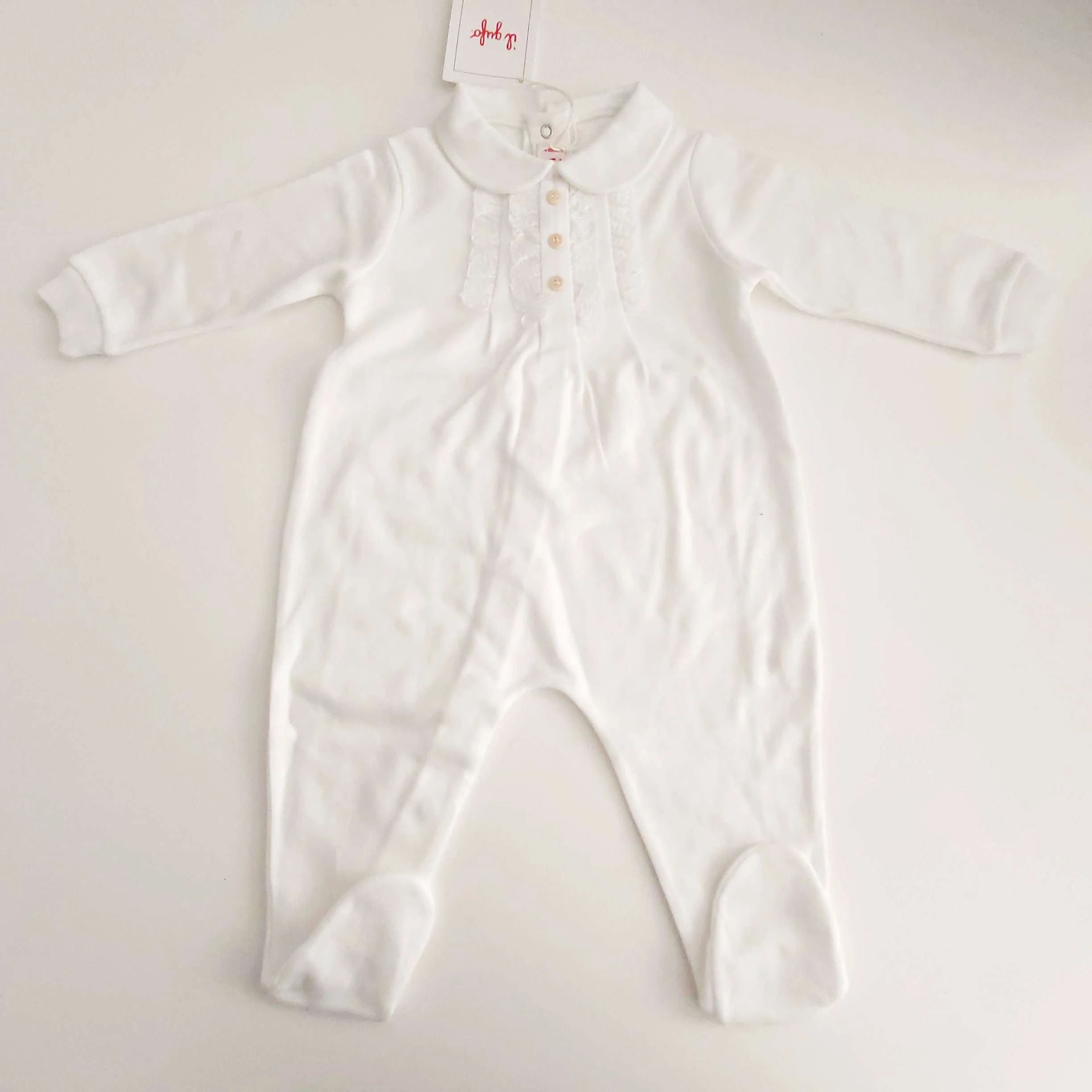 Tutina IL GUFO bianca in cotone Con bottoncini e merletto