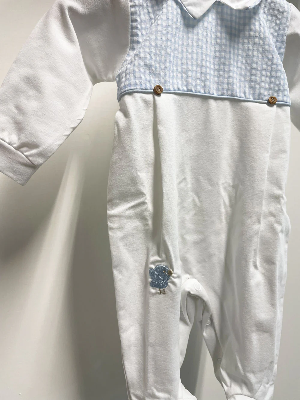 Uccellino ricamato sulla gamba.